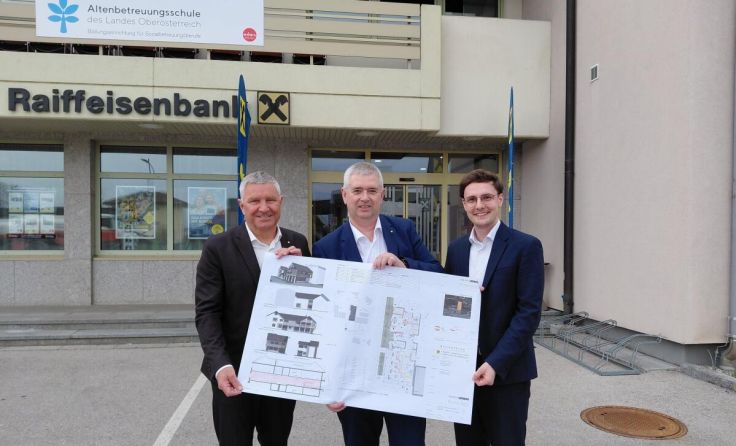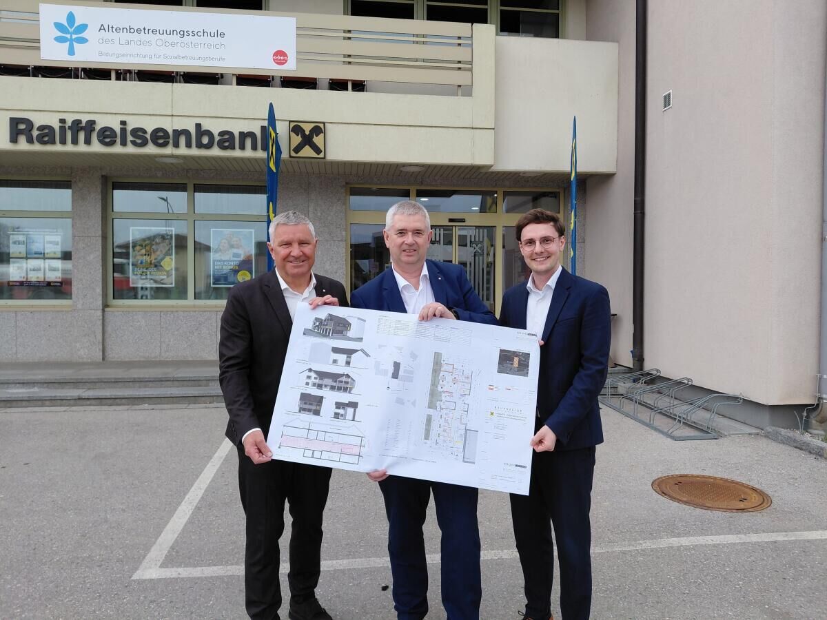 BAUMGARTENBERG. Die Raiffeisenbankstelle in Baumgartenberg wird an ihrem bisherigen Standort modernisiert. Raiffeisenbankvorstand Johann Fröschl und Bankstellenleiter Albert Kern luden zu einer Spatenstichfeier, bei der die Umbaupläne präsentiert wurden. Auch Bürgermeister Alexander Leutgeb (SPÖ) nahm an der Zusammenkunft teil.