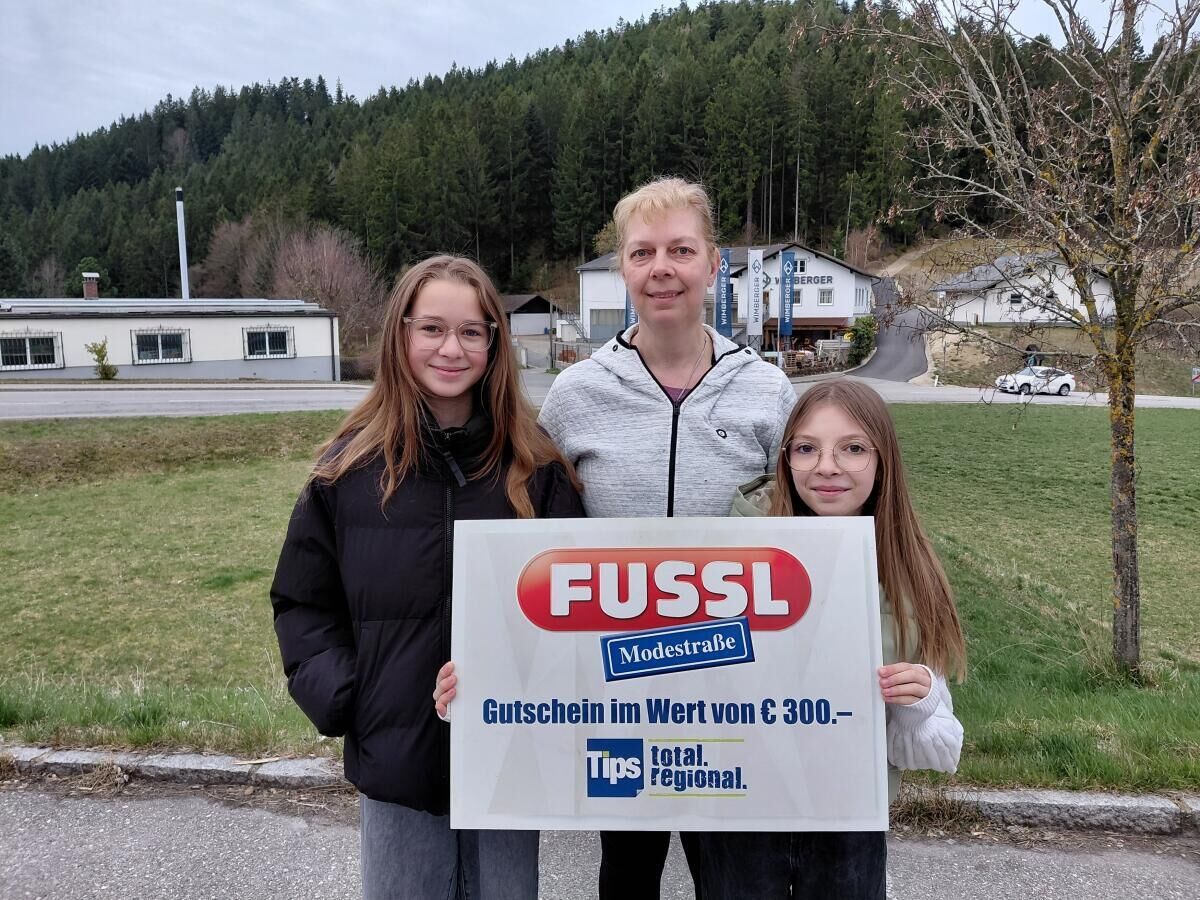 Auf die Frage nach ihrer Lieblingszeitung wusste Birgit Fixl natürlich die richtige Antwort: „Tips“. Sie darf sich über einen Fussl-Einkaufsgutschein im Wert von 300 Euro freuen.