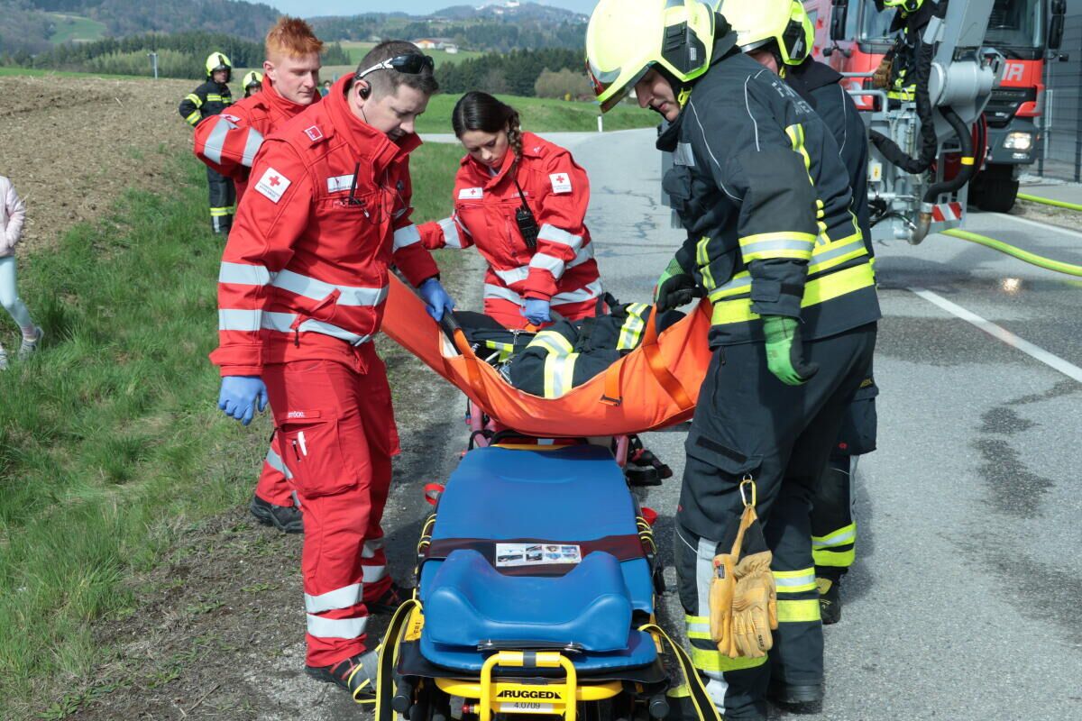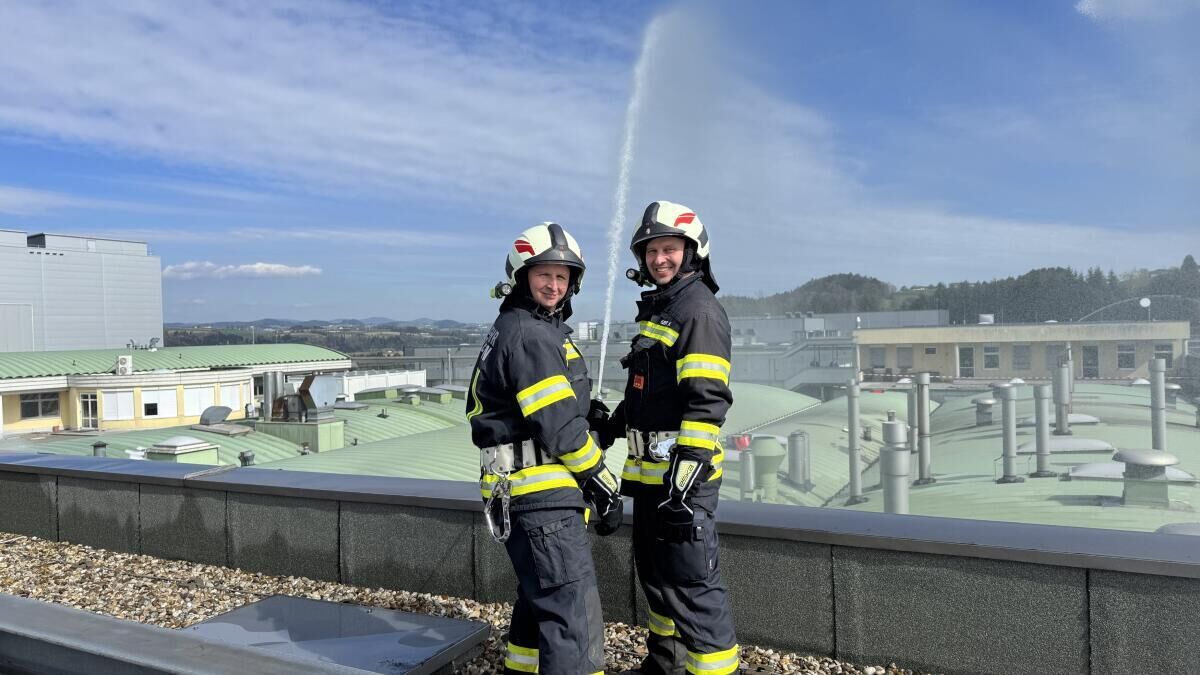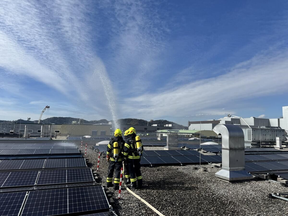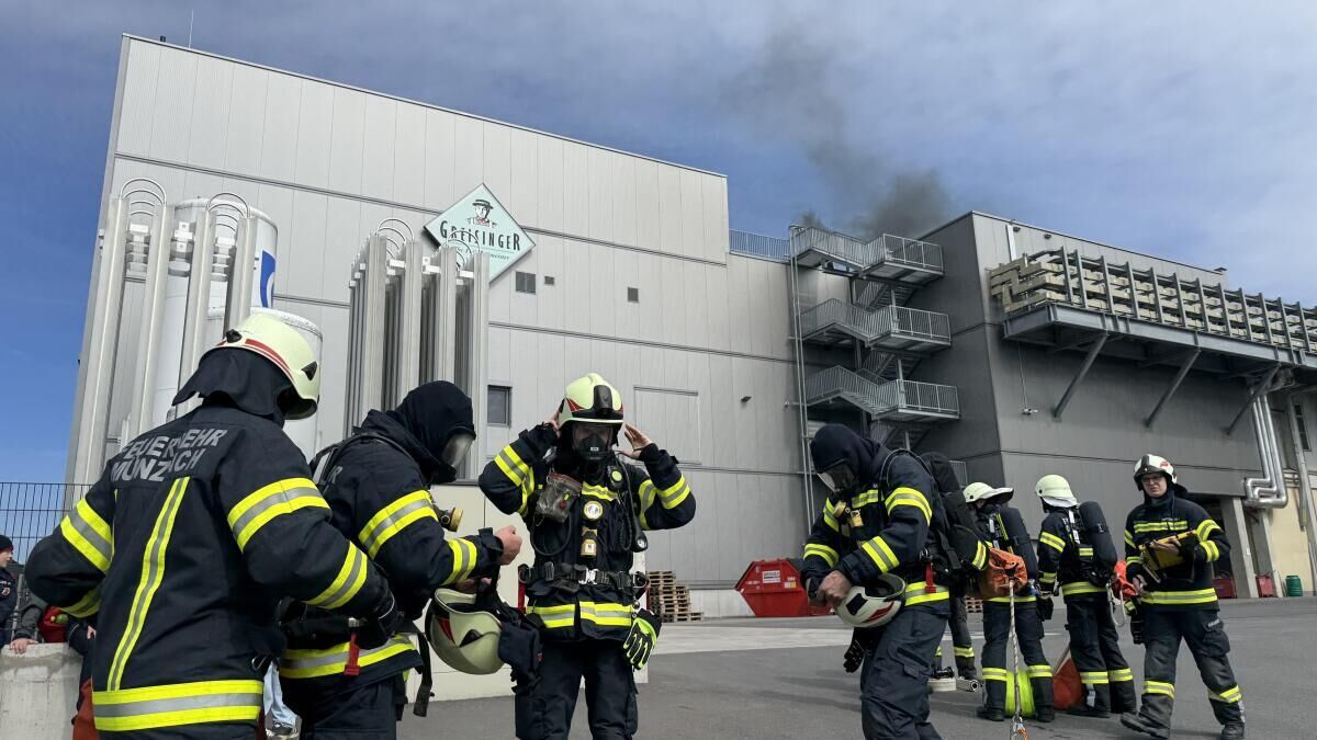 MÜNZBACH. Bei der Firma Greisinger in Münzbach fand eine groß angelegte Alarmstufe-drei-Übung statt. Insgesamt nahmen 18 Feuerwehren mit 27 Einsatzfahrzeugen sowie die Einsatzführungsunterstützung daran teil. Zusätzlich standen zwei Fahrzeuge des Roten Kreuzes Perg mit Besatzung im Übungseinsatz. Auch die Drohne der Feuerwehr Haid unterstützte die Einsatzleitung bei der Lageerkundung aus der Luft.