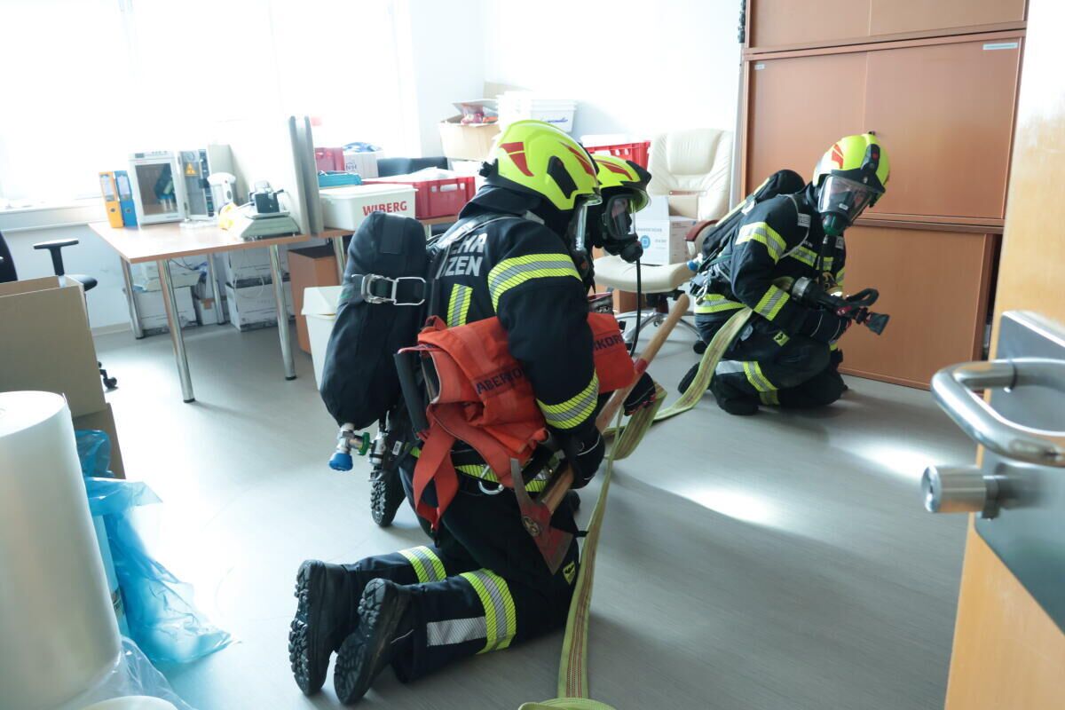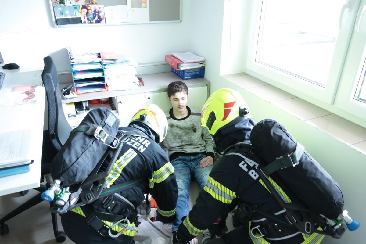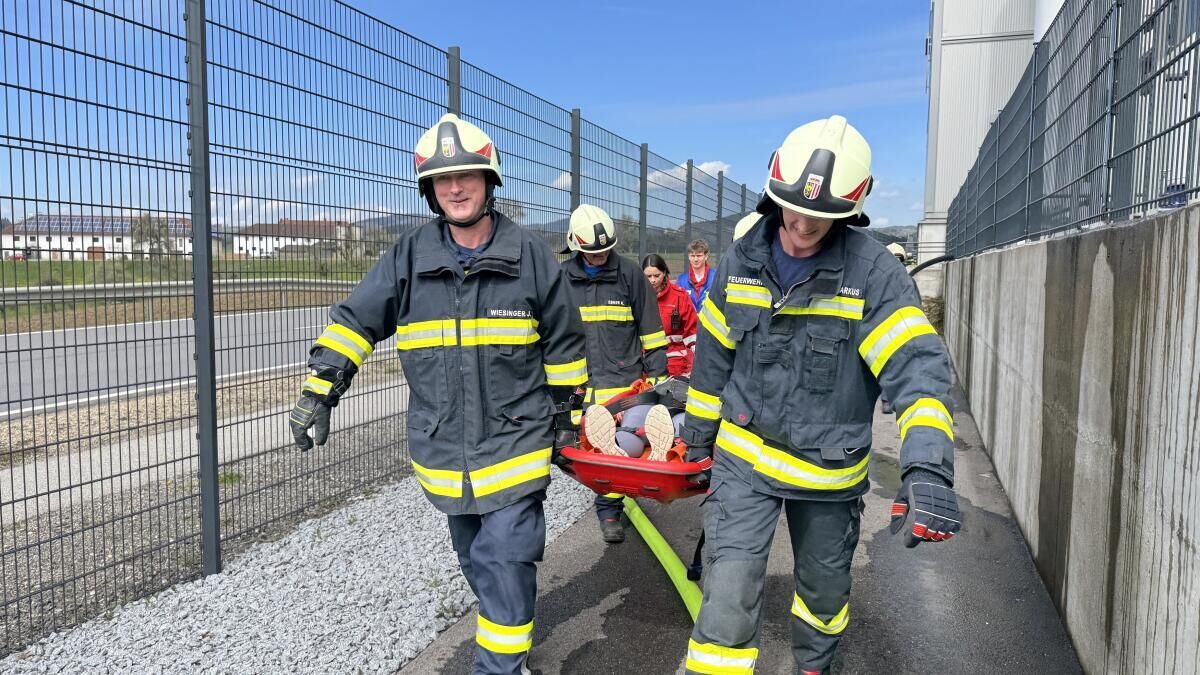 Die vermissten sowie teils schwer verletzten Personen konnten von den Atemschutztrupps rasch aufgefunden und dem Roten Kreuz zur Erstversorgung übergeben werden. Zusätzlich wurde angenommen, dass sich eine Atemschutzträgerin während der Löscharbeiten verletzte. Die Einsatzkräfte hatten die Aufgabe, die verletzte Kameradin mithilfe der Teleskopmastbühne aus einem der oberen Stockwerke des Firmengebäudes zu retten.