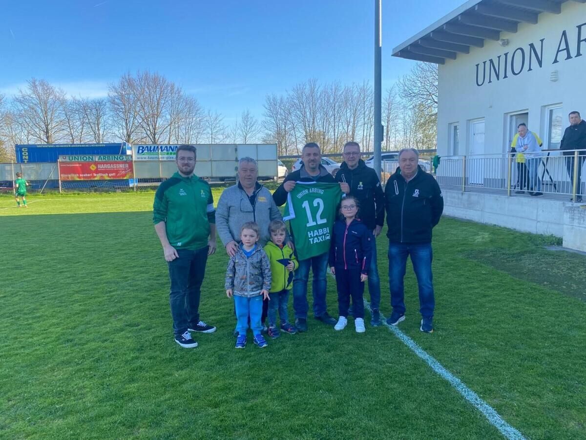 Zum Erfolg könnte das neue Dress, gesponsert von der Habbi Taxi GmbH aus Arbing beigetragen haben. Obmann Gerhard Hochstöger, Sektionsleiter Elmar Fichtinger und Stadionsprecher Markus Brunner bedankten sich im Schlossbergstadion für die Unterstützung.