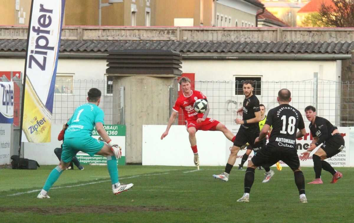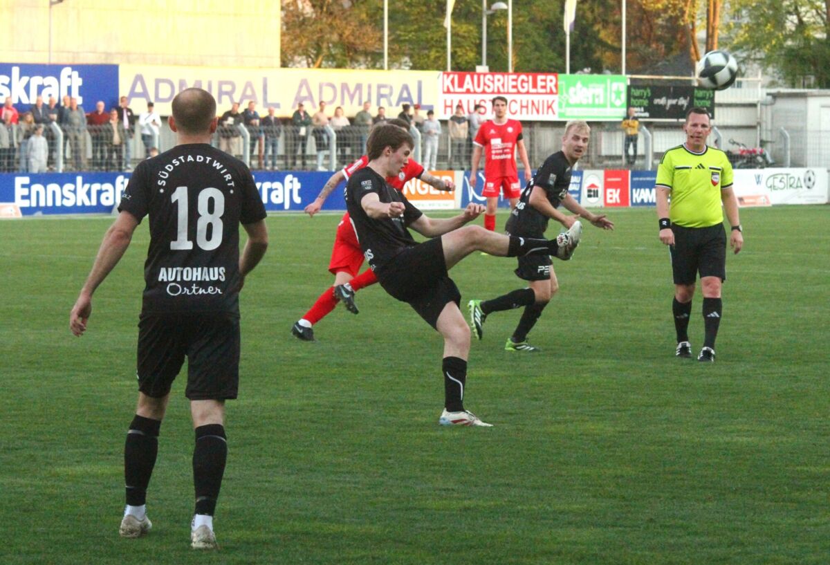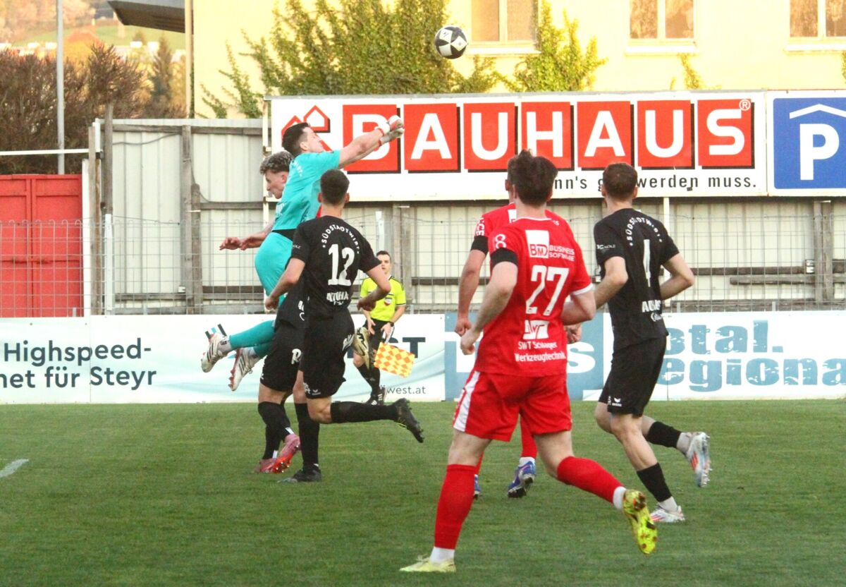 PERG. Am 18. April 2026 holt das Team von Jürgen Prandstätter beim Gastgeber im Vorwärts Stadion vor rund 1300 Fans ein 1:1-Unentschieden. Die HABAU-Elf spielt von Beginn weg ambitioniert und ist auch über weite Strecken besser als Steyr. Die Tore fallen jeweils vom Elfmeterpunkt. Nach Foul an Mario Ebenhofer trifft der noch vor der Pause zum verdienten Ausgleich. Perg teilt damit zum fünften Mal in Serie die Punkte.