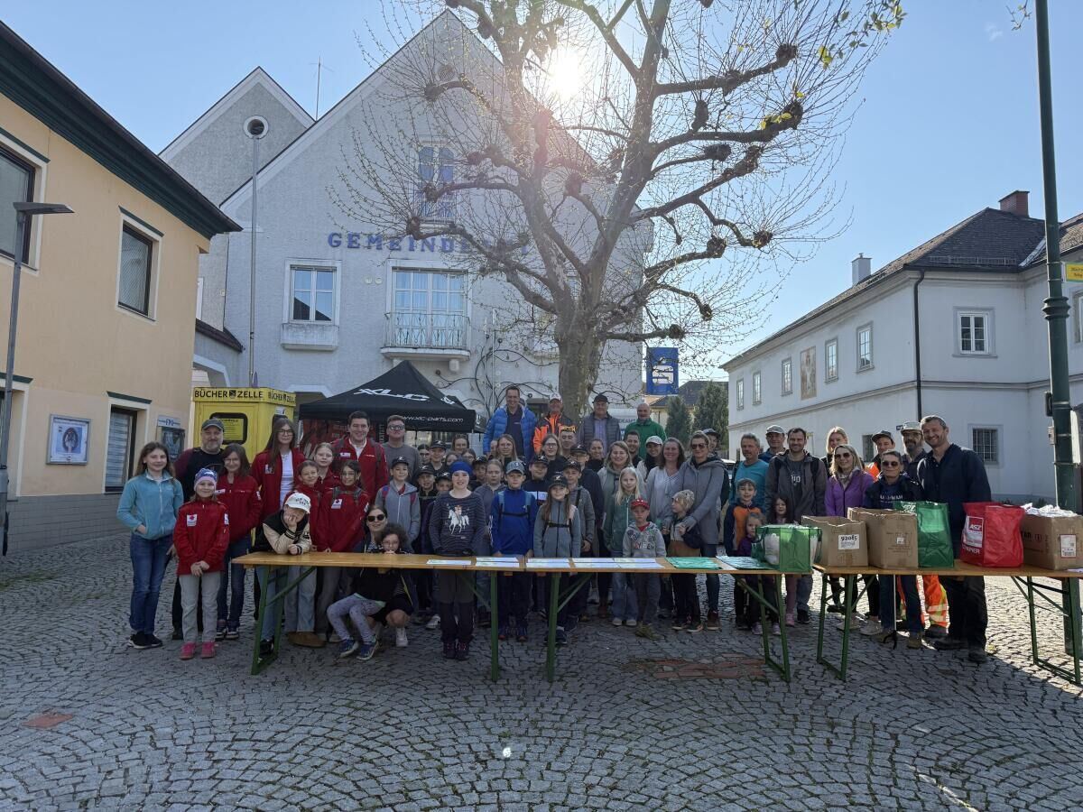 Organisator und Umweltausschussobmann Andreas Karlinger verteilte gemeinsam mit den Mitarbeitern der Gemeinde Säcke und Handschuhe sowie Streckenpläne. Insgesamt stellen sich 65 Personen in den Dienst des Gemeinwohls, darunter eine große Abordnung des Jugendrotkreuzes und der Feuerwehr-Jugend, Vertreter der Parteien (ÖVP, SPÖ und Grüne), die Gemeindespitze mit Bürgermeister Max Oberleitner und Vizebürgermeister Karl Weilig, sowie zahlreiche örtliche Vereine und Familien der Gemeinde. Als Belohnung erhielten alle Mitwirkenden einen 10 Euro WiG-Gutschein. Wer mit dem Radl kam, erhielt zudem ein kostenloses Service von Sport Mayr.