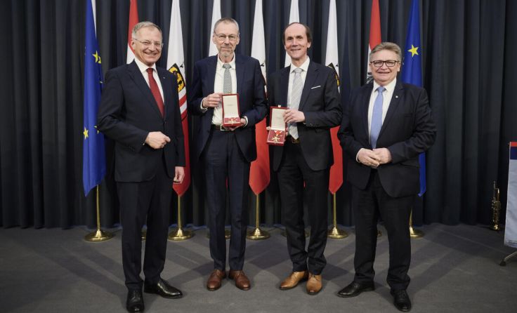 NAARN. Im Steinernen Saal des Linzer Landhauses wurden verdiente Persönlichkeiten des oberösterreichischen Landesdienstes ausgezeichnet. Unter den Geehrten befanden sich auch zwei Bürger aus Naarn im Machlande: Direktor außer Dienst Johann Weilguni und Chorleiter Klemens Öhlinger, die mit dem Goldenen Ehrenzeichen für den oberösterreichischen Landesdienst ausgezeichnet wurden.