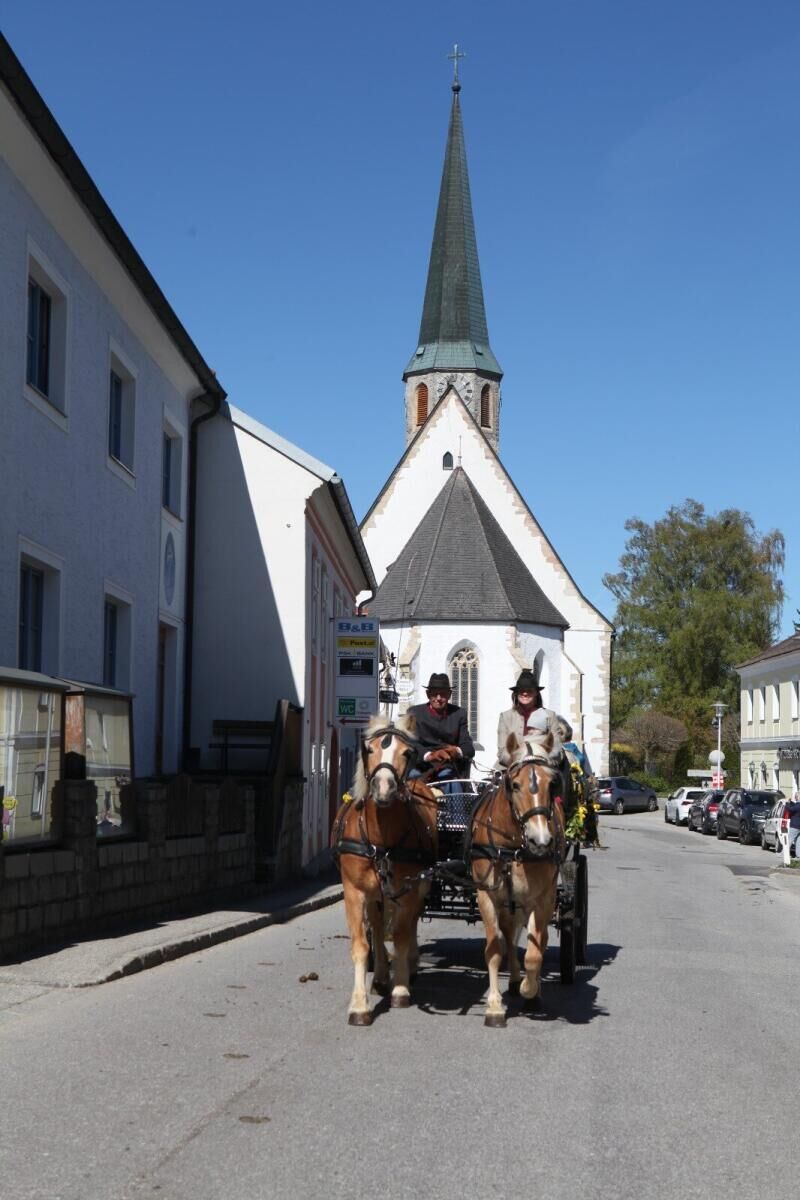 Zahlreiche Reiter und Gespannfahrer nahmen auch heuer wieder an dem festlichen Umzug teil und sorgten für ein beeindruckendes Bild. Nach dem gemeinsamen Rundritt durch den Ort folgte die traditionelle Pferdesegnung am Festgelände.