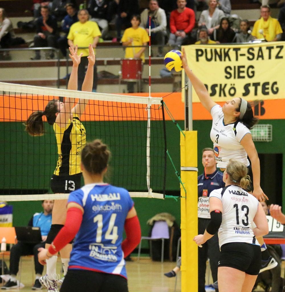 PERG. Knapp zwei Stunden dauerte gestern Abend in der Donauwell-Arena das erste Viertelfinale in der Austrian Volley League Women zwischen der SG Prinz Brunnenbau Volleys aus Perg und den Damen vom ASKÖ Linz/Steg. Die Gäste aus der Stahlstadt hatten im Playoff-Derby schließlich nach vier umkämpften Sätzen das bessere Ende für sich.