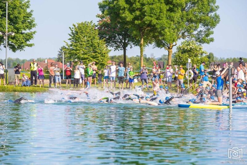 Um 17 Uhr ging es dann zur Wettkampfbesprechung für den Sprinttriathlon. Der Leiter des Organisationsteams Christian Bruckner erklärte nochmal alle Regeln und die Strecke und dann ging es auch schon an den Start. Um 17.30 Uhr starteten vor einer traumhaften Kulisse zuerst die Männer in den Bewerb über 750 Meter Schwimmen, 19 Kilometer Radfahren und 5 Kilometer Laufen. Drei Minuten später fiel dann auch der Startschuss für die Damen und die Staffelteilnehmer.
