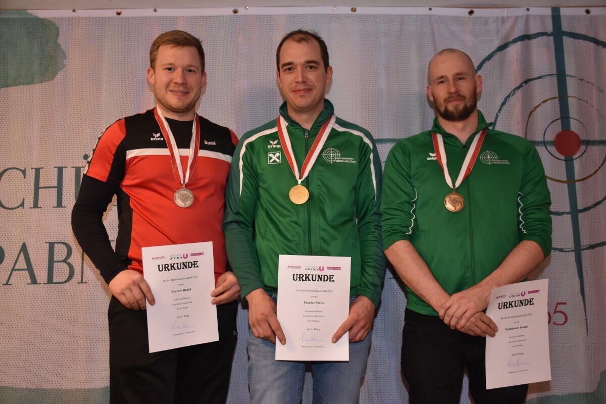 Die beste Herrenleistung erbrachte Mario Peneder aus Pabneukirchen bei den Luftpistole-Bezirksmeisterschaften. Bei den Frauen siegte Natascha Sary aus Naarn. Den Bewerb „Luftpistole mit Auflage“ konnte bei den Herren Patrick Stiefelbauer aus Grein für sich entscheiden. Bei den Damen holte sich Romana Hinterbichler aus Naarn die Goldmedaille.