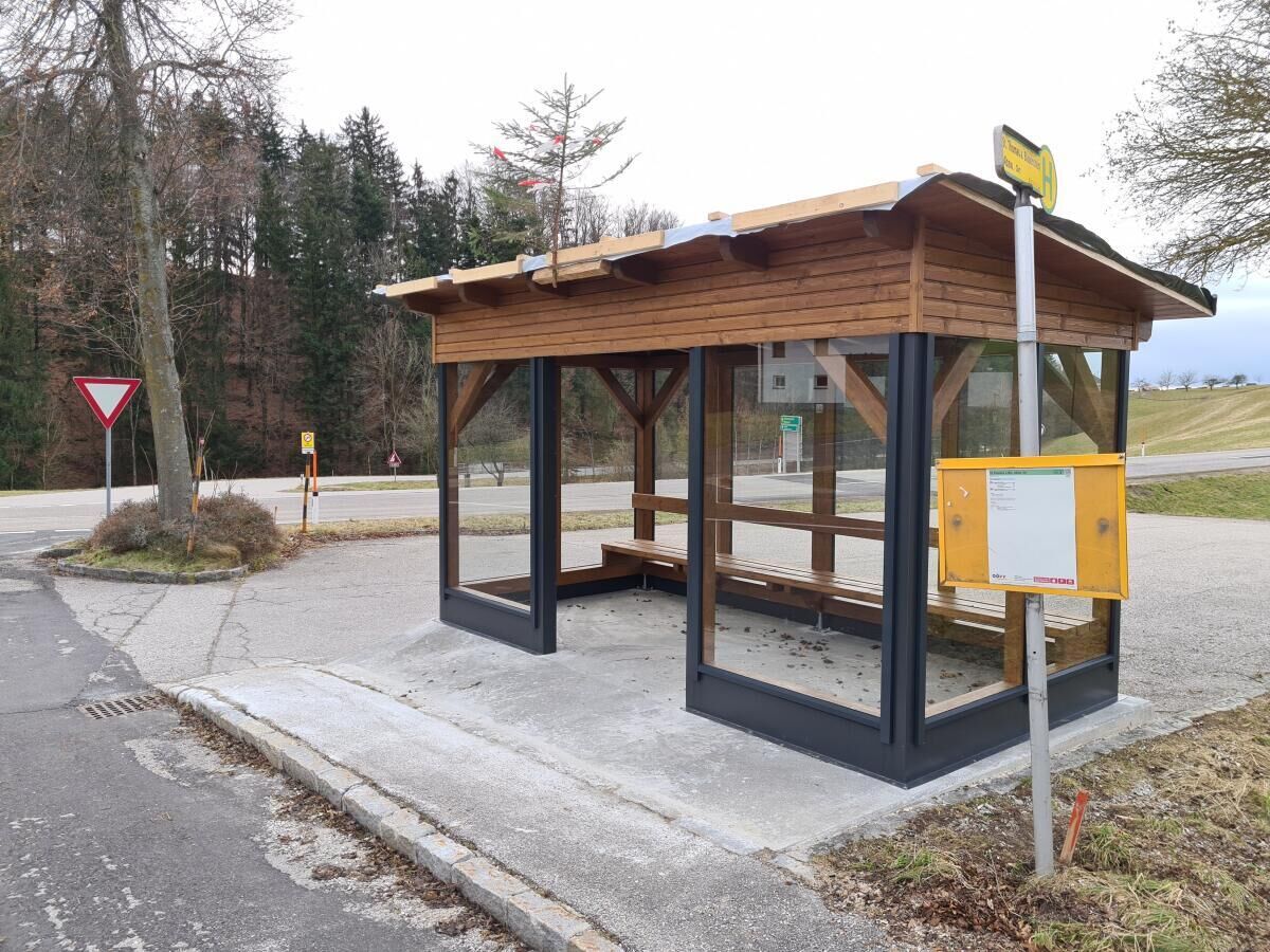 ST. THOMAS/BLASENSTEIN. Mit Jahreswechsel wurden neue moderne Wartehäuser bei den Haltestellen Himmelbauerkreuzung und Güterweg Obersteiner/Zufahrt Panoramaweg in St.Thomas am Blasenstein aufgestellt.