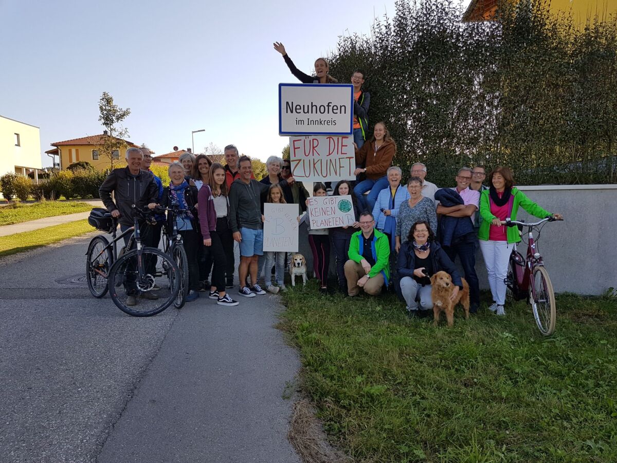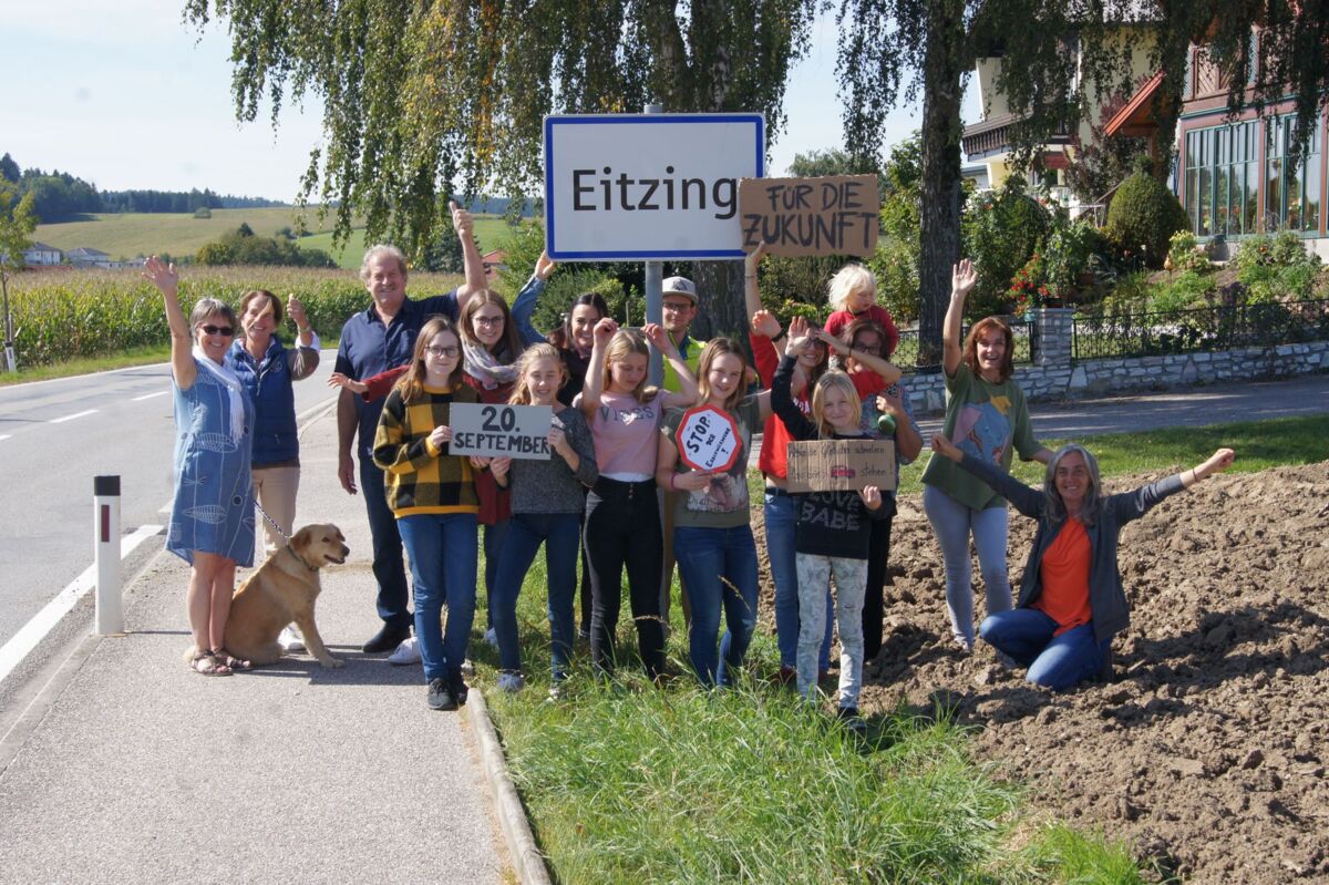 RIED, BEZIRK. Auch im Bezirk Ried wurde am Freitag ein Beitrag zum weltweiten „Earth Strike“ geleitet. Unter dem Motto „Dein Ort für die Zukunft“ versammelten sich Demonstranten in elf Orten und brachten unter ihrem Ortsschild den Zusatz „Für die Zukunft“ an.