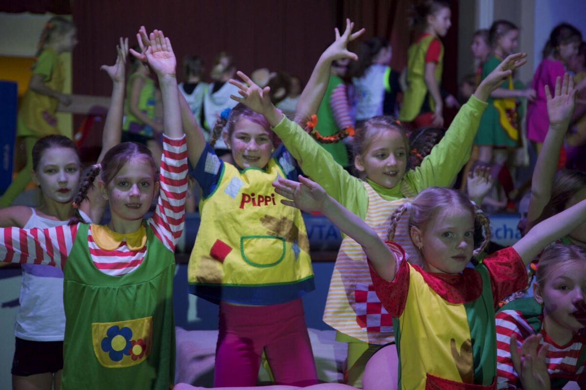 Die Turnmäuse der Kleinkinderturnstunde gestalteten die „Sendung mit der Maus“ neu und der nächste Programmpunkt war ganz dem starken Mädchen aus Schweden gewidmet. Unzählige Pippis (Mädchen 6-10) bevölkerten die Bühne der Jahnturnhalle und zeigten ihr Können an den Geräten.