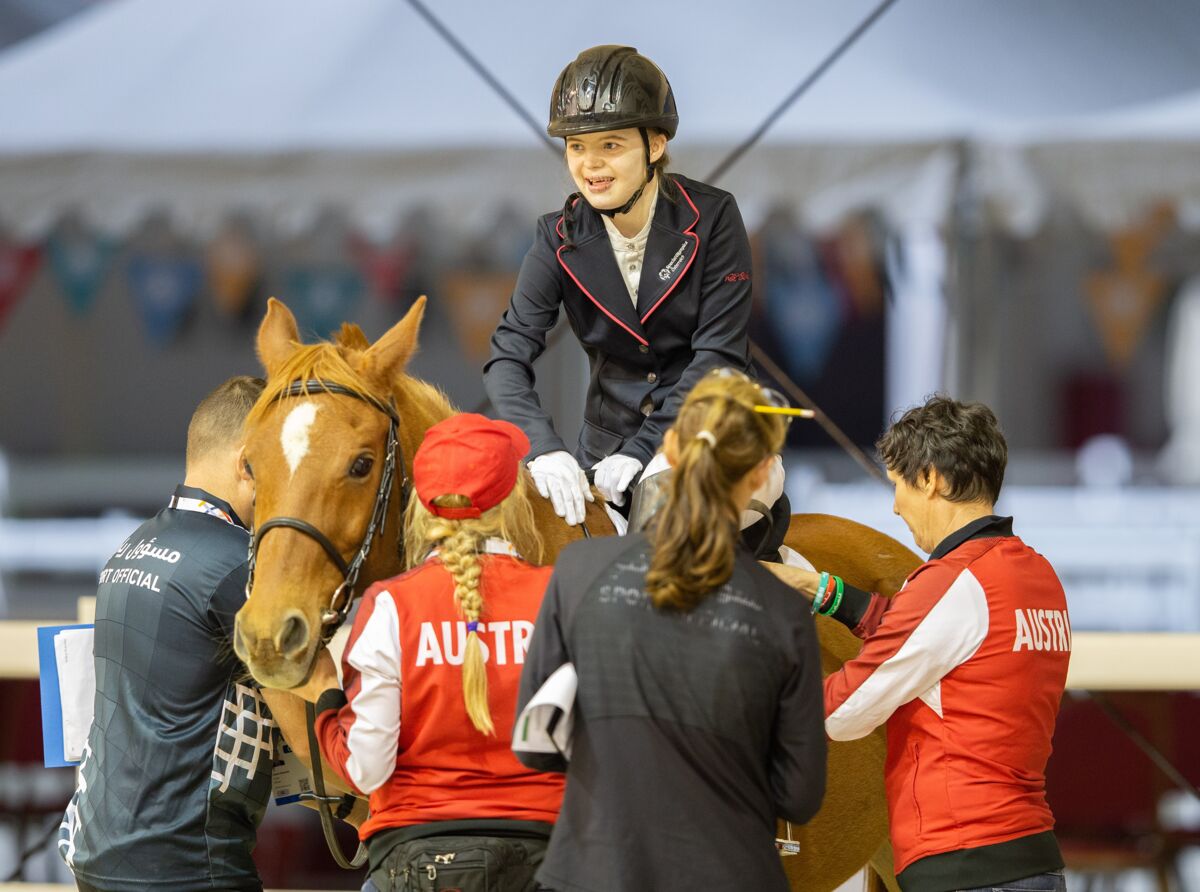 Lea Gschwandtner aus Aurolzmünster ritt zu zwei Bronzemedaillen (English Equitation und Working Trail) und einem fünften Platz. Bei der Siegerehrung bezauberte sie alle Anwesenden mit ihrer Freude.