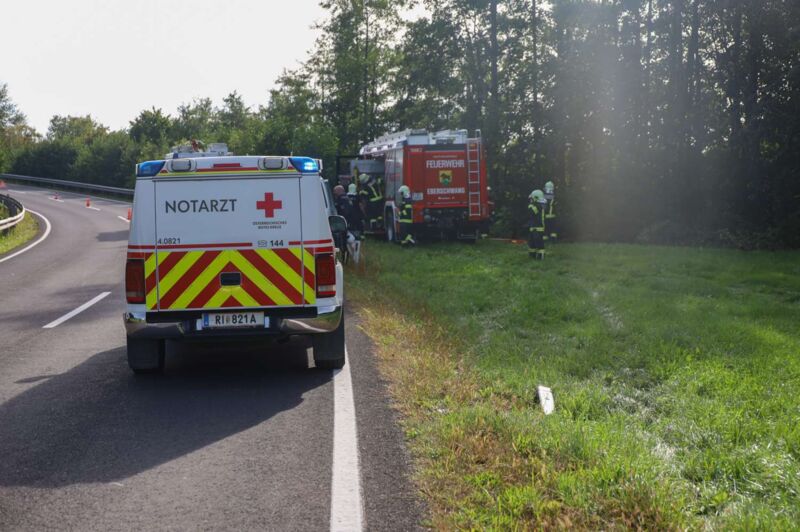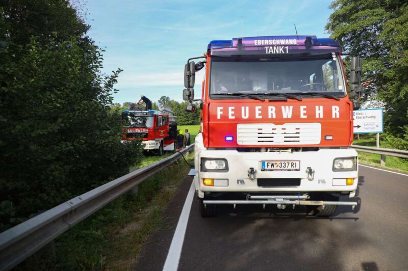 EBERSCHWANG. In Eberschwang ist Sonntagnachmittag eine Autolenkerin auf der B143 Hausruckstraße mit ihrem Pkw von der Straße abgekommen in eine Waldböschung gestürzt.