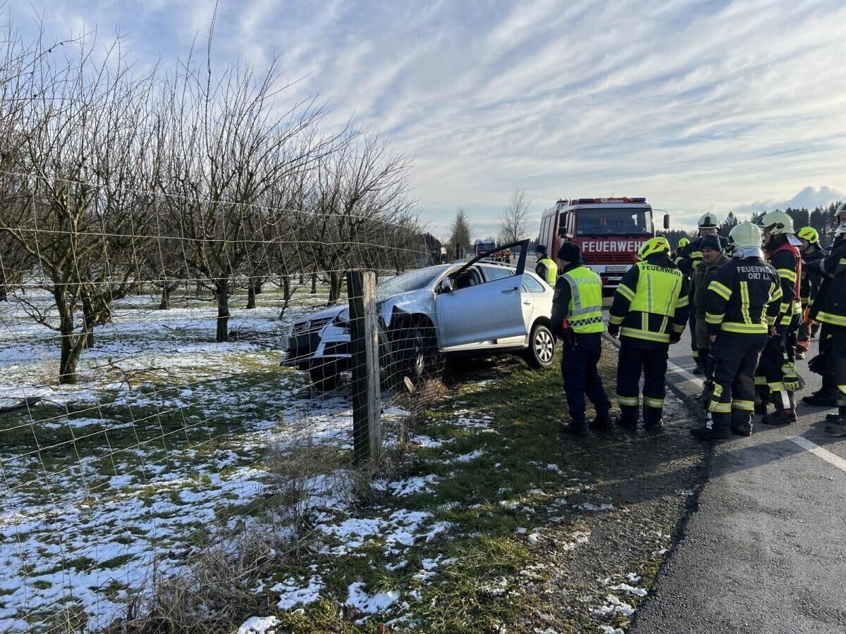 Ein Auto war von der Straße abgekommen und mit einem Zaunpfahl kollidiert. „Mit Muskelkraft wurde die Tür geöffnet und die Fahrerin konnte anschließend, augenscheinlich unverletzt, eigenständig das Fahrzeug verlassen“, berichtet die Feuerwehr Antiesenhofen, die als erste am Einsatzort war. Die Feuerwehren Reichersberg und Münsteuer räumten die Unfallstelle.