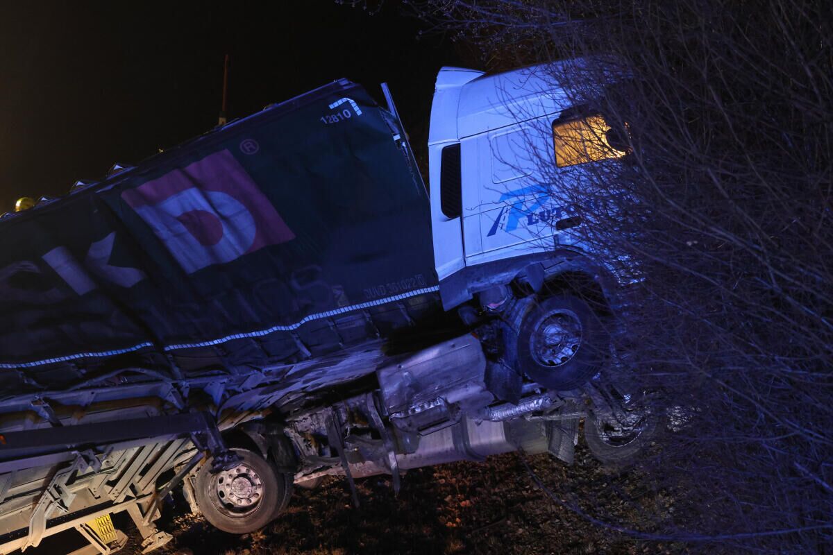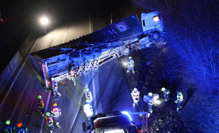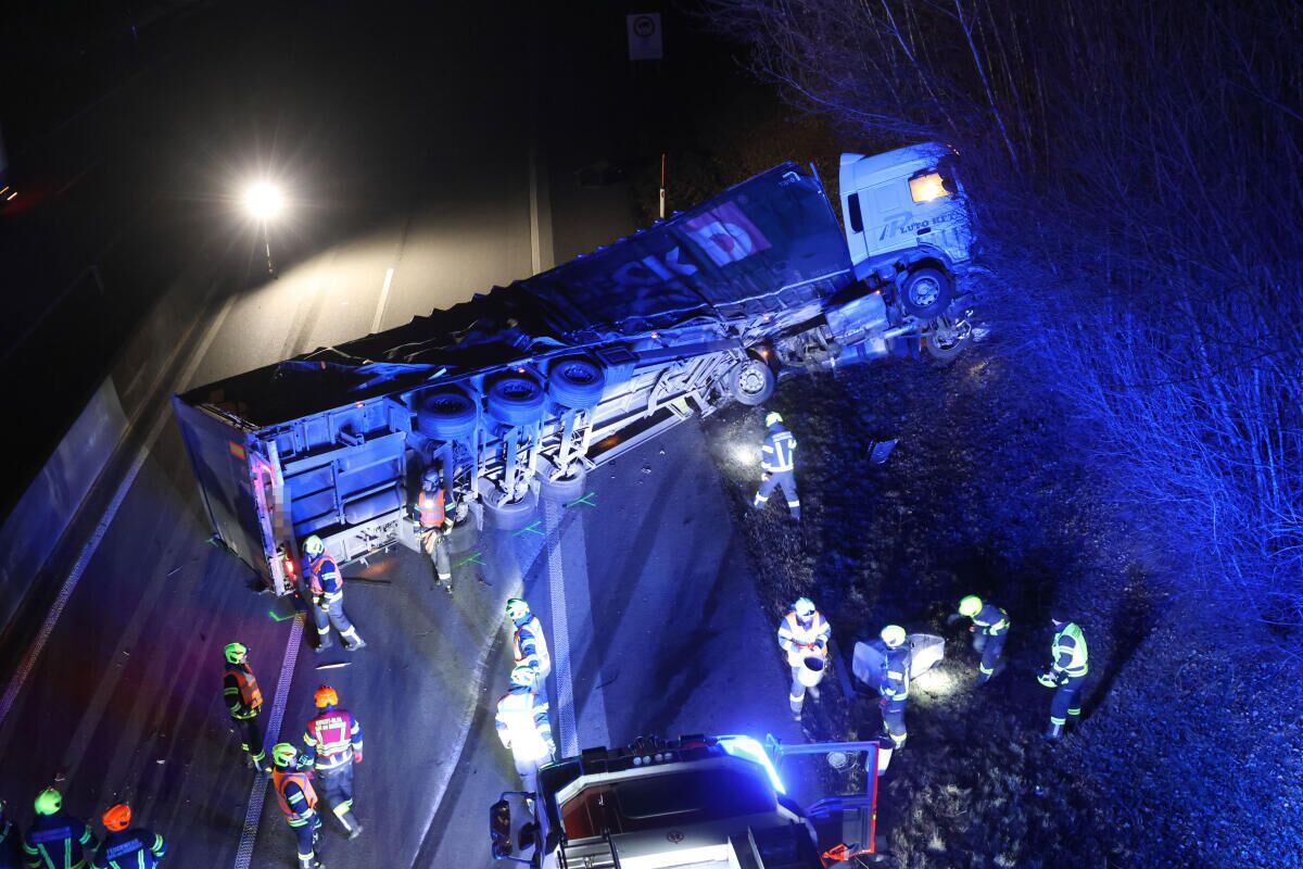 Der Unfall passierte in Fahrtrichtung Passau. Ein Lkw-Lenker hat offensichtlich aus bislang noch unbekannten Gründen die Kontrolle über sein Schwerfahrzeug verloren, welches ins Schleudern geriet und schließlich umstürzte. Der Sattelauflieger kam quer über die Fahrbahn zum Liegen, die Fahrerkabine lag schon in der Böschung. Der Lenker war ersten Angaben nach nicht eingeklemmt, er konnte sich offenbar eigenständig aus dem Führerhaus befreien und wurde notärztlich versorgt.