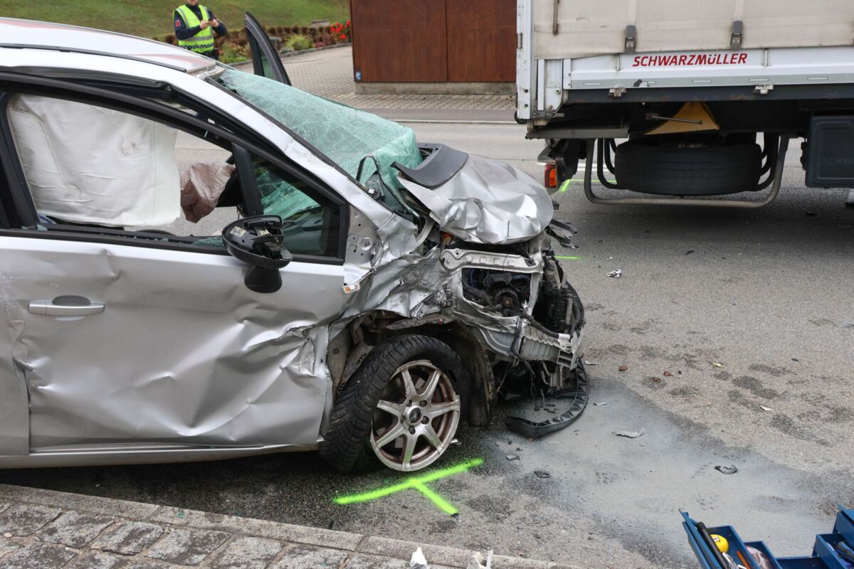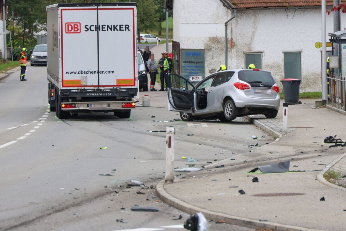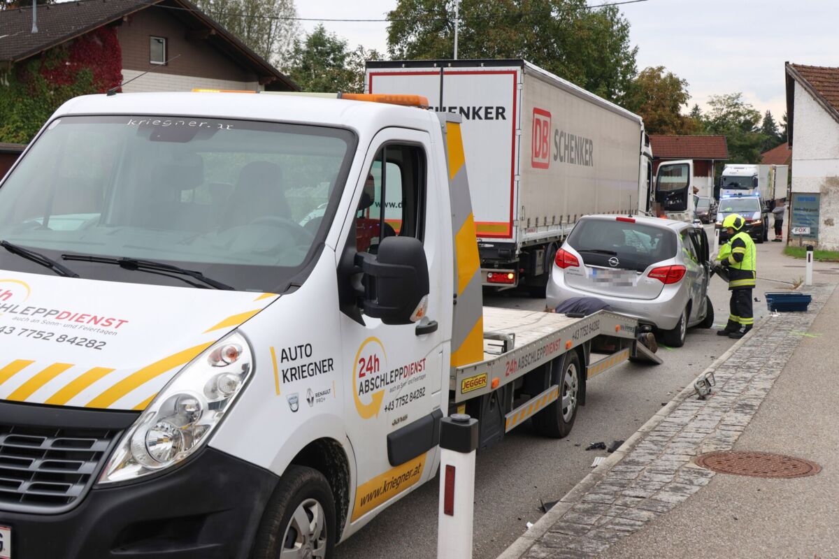 TUMELTSHAM. Ein schwerer Kreuzungscrash zwischen einem PKW und einem LKW - offenbar bei einem Abbiegemanöver - hat Dienstagnachmittag in Tumeltsham einen Verletzten gefordert.