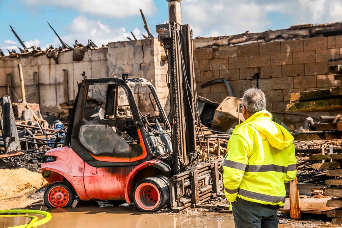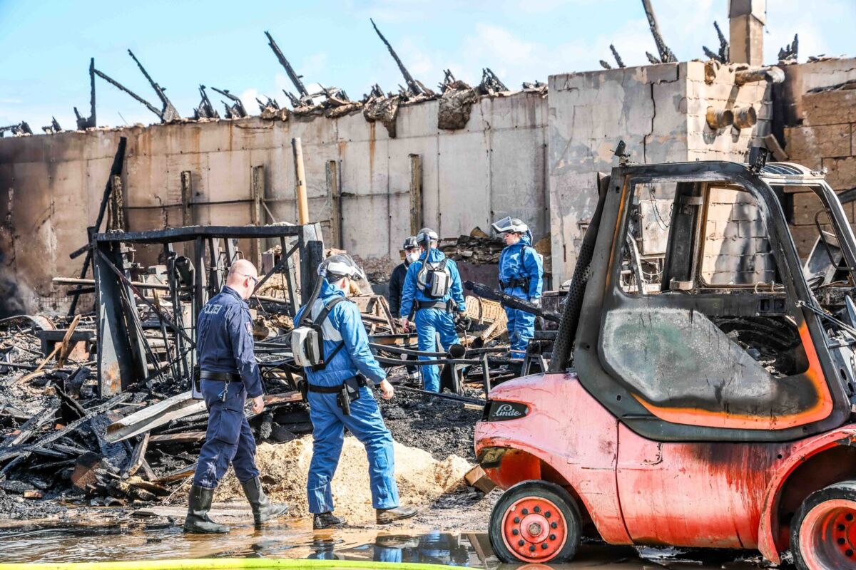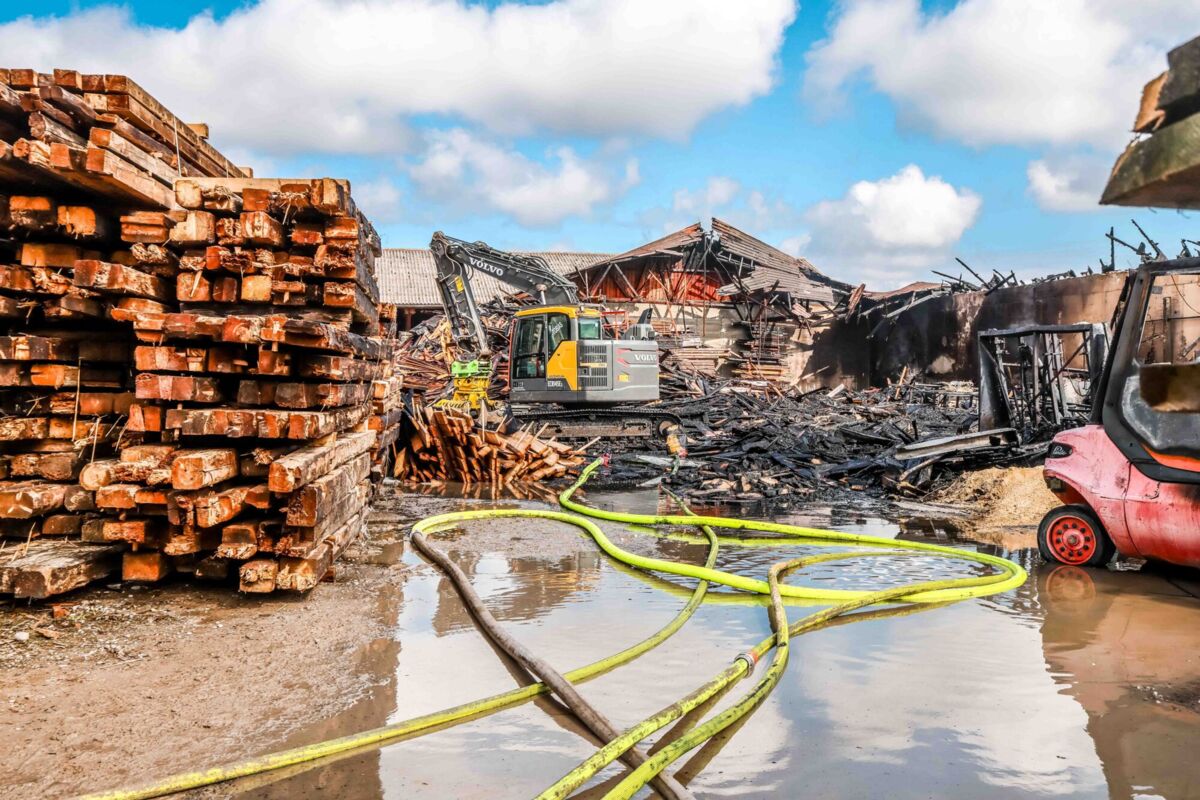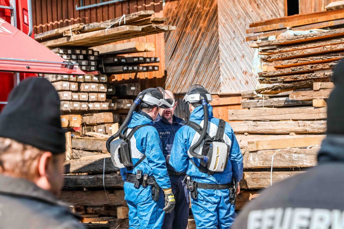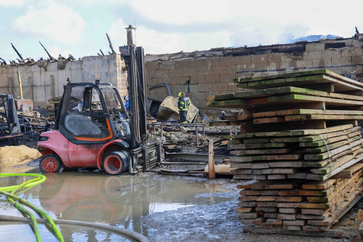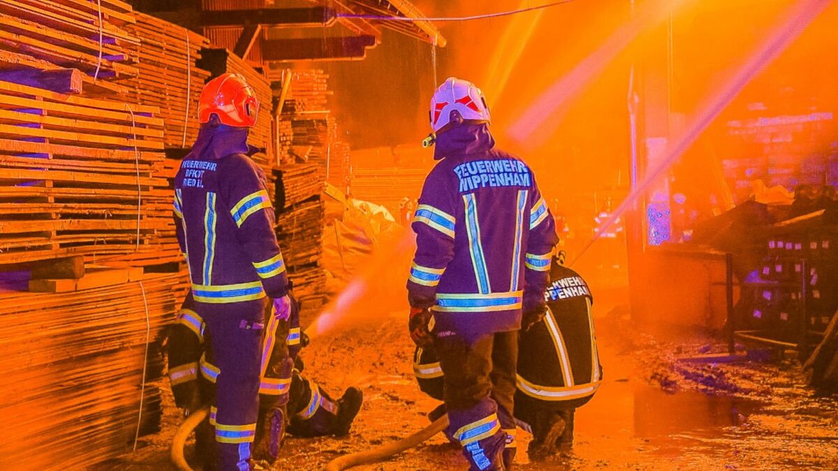 Gegen 23.54 Uhr wurde der Notruf wegen eines Feuers in einer Lagerhalle abgesetzt. Bereits beim Eintreffen der ersten Einsatzkräfte stand ein Großteil der Halle in Vollbrand. Die Brandlast war durch gelagertes Altholz besonders hoch, was zu einer raschen Ausbreitung der Flammen führte.
