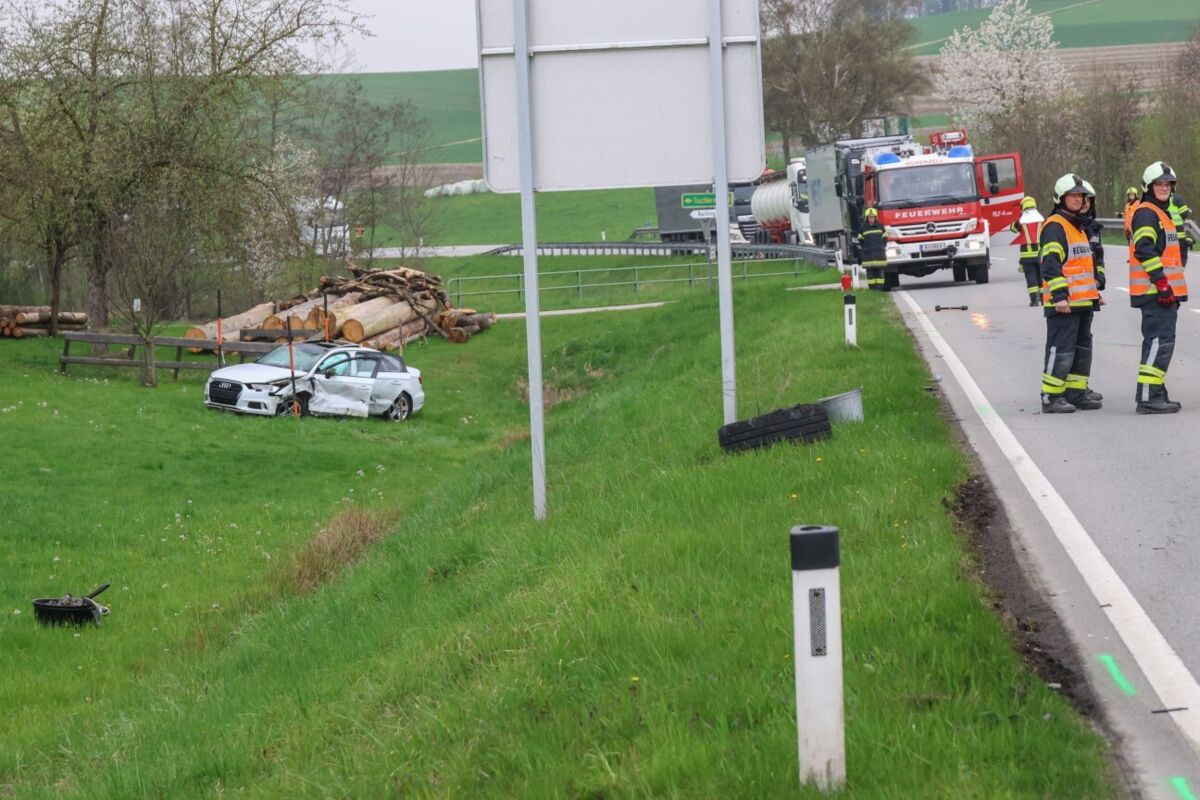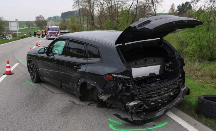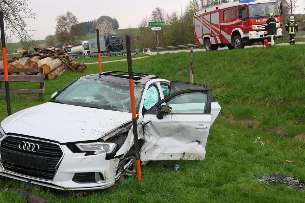 Im Bereich der Ortschaft Baching prallten aus bislang ungeklärter Ursache zwei Pkw zusammen. Eines der Autos blieb stark beschädigt auf der Fahrbahn der Rieder Straße stehen, das zweite Fahrzeug überschlug sich über eine Böschung und kam in einer angrenzenden Wiese zum Liegen.