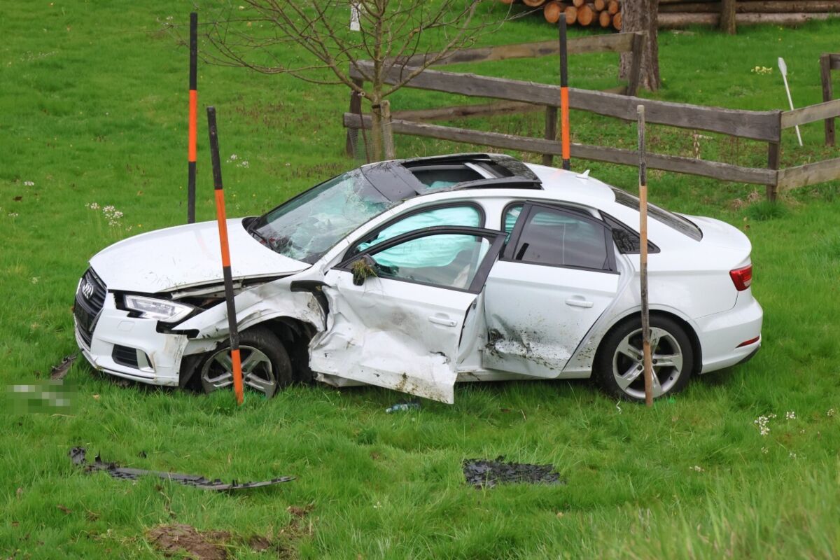 Zwei Insassen erlitten Verletzungen eher leichten Grades. Der bereits angeforderte Notarzthubschrauber konnte daher noch im Anflug wieder abbestellt werden.