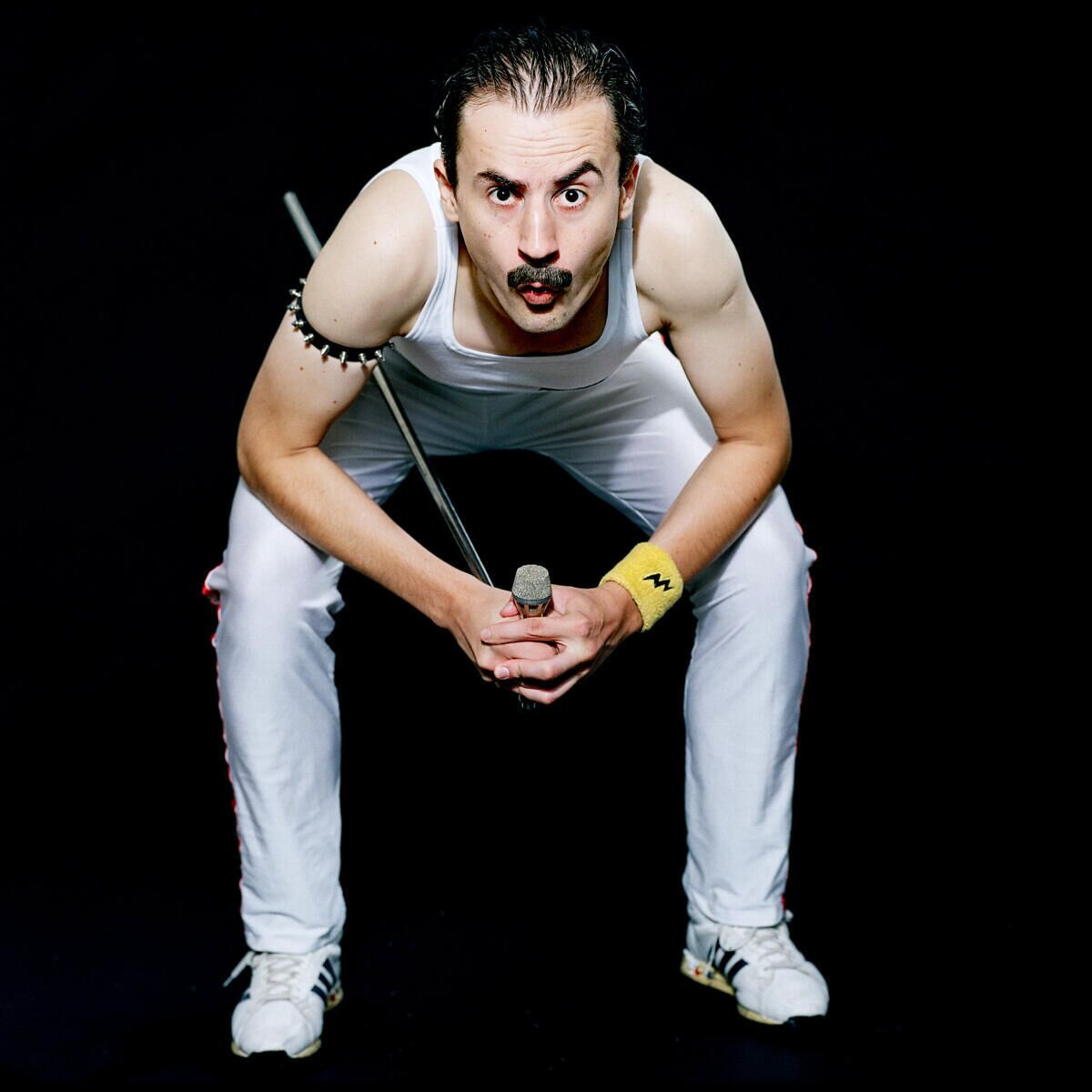 Austrofred ist ab 21:30 auf der Bühne. Seine zur Trademark gewordene Mischung aus Queen-Musik und Austropop-Texten wirkt auf den ersten Blick krude und komisch, auf den zweiten frech und charmant, auf den dritten einfach nur grandios. Wer den Text von „Märchenprinz“ zu „Bohemian Rhapsody“ singt und „Schifoan“ zu „We will rock you“, der ist - so sagt zumindest seine Presseabteilung - entweder ein Genie oder ein Genie. Verschärfend kommen ein Freddie-Mercury-Outfit auf Madame Tussaud’s-Niveau, ausgesuchte Wembley-Moves und ein gepflegter Schnauzbart dazu.