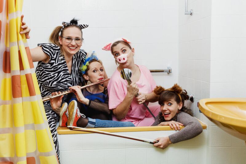 Das Trio Frizzante (Marlies Gaugl, Flöte; Marta Kordykiewicz, Cello; Doris Kitzmantel, Klavier) und Barbara Göbl-Kramer (Schauspiel, Gesang) erzählen humorvoll-musikalisch, wie sich Sabrina Schwein in der Corona-Zeit erst zuhause langweilt und dann mit Hilfe ihrer Freunde Musik in ihr Leben lässt.