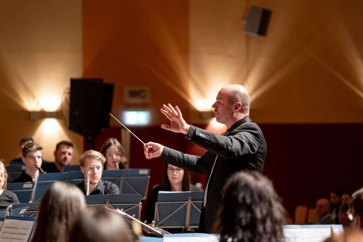 Unter der Leitung seines Gründers, Bezirkskapellmeister-Stellvertreter Stefan Spieler, spielten die Musiker aus über 20 Kapellen im OÖV-Saal der Rieder Messe ein abwechslungsreiches Programm. Bei zwei Stücken sang der Jugendchor der LMS Ried.