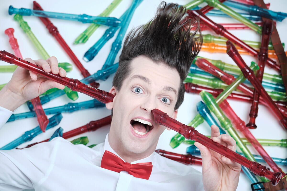 Sowohl informativ als auch höchst unterhaltsam rückt er das vielfach unterschätzte Instrument Blockflöte in den Mittelpunkt seiner Performance. Mit zahlreichen Plastikflöten, einer rockigen E-Flöte, der einzigen Leopardenbassflöte der Welt und frechen Flötenideen verbindet „The Fluteman“ Poesie und Comedy zu einem verrückten, kongenialen Konzert für Jung und Alt. Er spielt dabei Werke von Johann Sebastian Bach, Wolfgang Amadeus Mozart, Ludwig van Beethoven, Niccolò Paganini, Toni Watson und eigene Kompositionen.