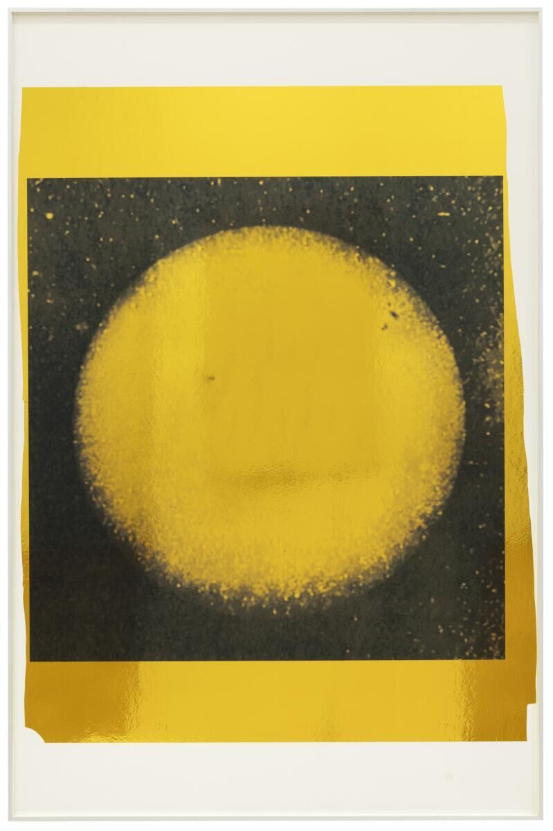 Der Siebdruck „1845“ auf goldener Isolationsfolie greift eine der ersten fotografischen Aufnahmen der Sonne aus dem Jahr 1845 auf, erstellt von Hippolyte Fizeau und Léon Foucault mithilfe der Daguerreotypie, auf der bereits Sonnenflecken sichtbar sind.