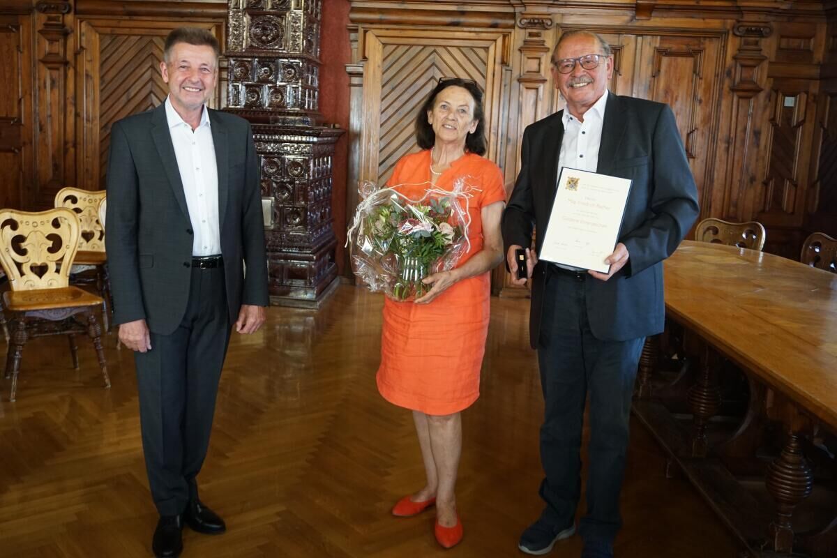 RIED. Die Stadtgemeinde Ried hat den ehemaligen Geschäftsführer der Rieder Messe Fritz Racher für sein Wirken und Engagement mit dem Goldenen Ehrenzeichen ausgezeichnet.