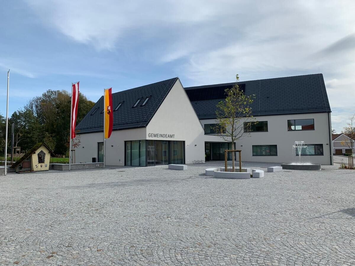 Mit der Planung begonnen hat man in der Gemeinde 2015. Zwei Jahre später wurde der Architektenwettbewerb ausgeschrieben. Mit der Straßenverlegung startete die Gemeinde im Jahr 2018, um den neuen Ortsplatz entsprechend gestalten zu können. „Im Februar 2020 haben wir das Gemeindeamt bezogen. Die Größe des Gemeindeamtes ist für eine zeitgemäße Arbeit angepasst worden. Der Sitzungssaal hat eine Doppelfunktion und wird für Sitzungen, Veranstaltungen und standesamtliche Trauungen genutzt“, betont Bürgermeister Erwin Diermayr. Besonders stolz ist man auf den schönen Ortsplatz mit dem Springbrunnen. „Der Springbrunnen ist Anziehungspunkt für jung und alt. Besonders den Kindern taugt der Brunnen“, berichtet der Ortschef. Der Ortsplatz wird auch von Vereinen immer gerne genutzt, da Zeltverankerungen einbetoniert wurden und dieser nun multifunktional genutzt werden kann. Wasseranschlüsse, Kanal und Strom sind ebenfalls vorhanden. Ein besonderer Augenmerk wurde auf eine natürliche Beschattung gelegt.
