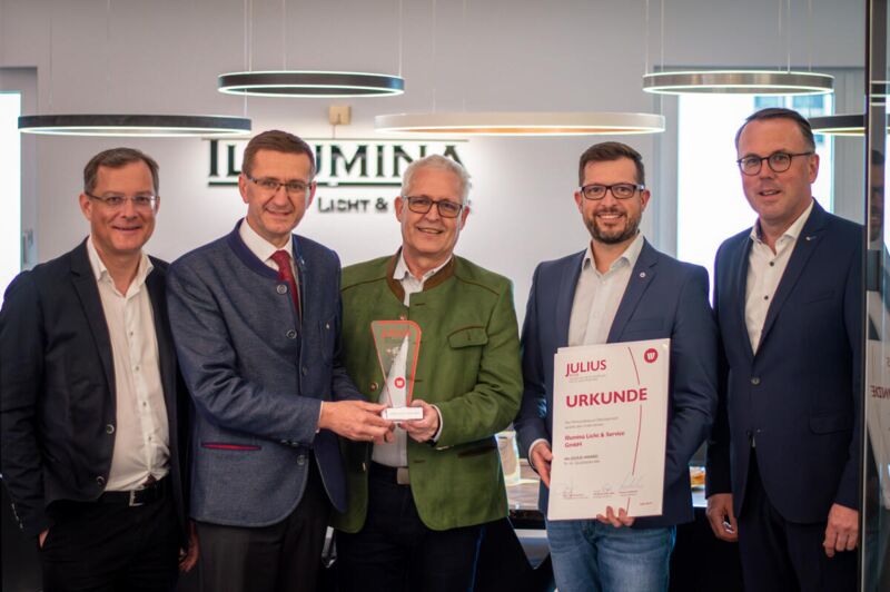 Die Firma Illumina in Ried ist spezialisiert auf individuelle Lichtplanung. Gemeinsam mit Experten aus den Bereichen Architektur und Elektrotechnik wird bei Illumina eine lichttechnische Lösung für vielfältige Anwendungen entwickelt. Geschäftsführer David Huber erläutert: „Von der Beratung, über die Projektierung bis hin zur Montage bieten wir unseren Kunden alle Leistungen auf dem Gebiet der Lichtplanung. Dabei sind uns Energieeffizienz und die Berücksichtigung der aktuell gültigen Vorschriften und Normen ein großes Anliegen.“ „Es ist erfreulich, einen Betrieb wie Illumina bei uns im Bezirk ansässig zu haben. Sie sichern mit ihrem tagtäglichen Einsatz die Basis für Wachstum, Beschäftigung und Wohlstand“, so Landtagsabgeordneter Günther Lengauerr bei der Überreichung des Preises.