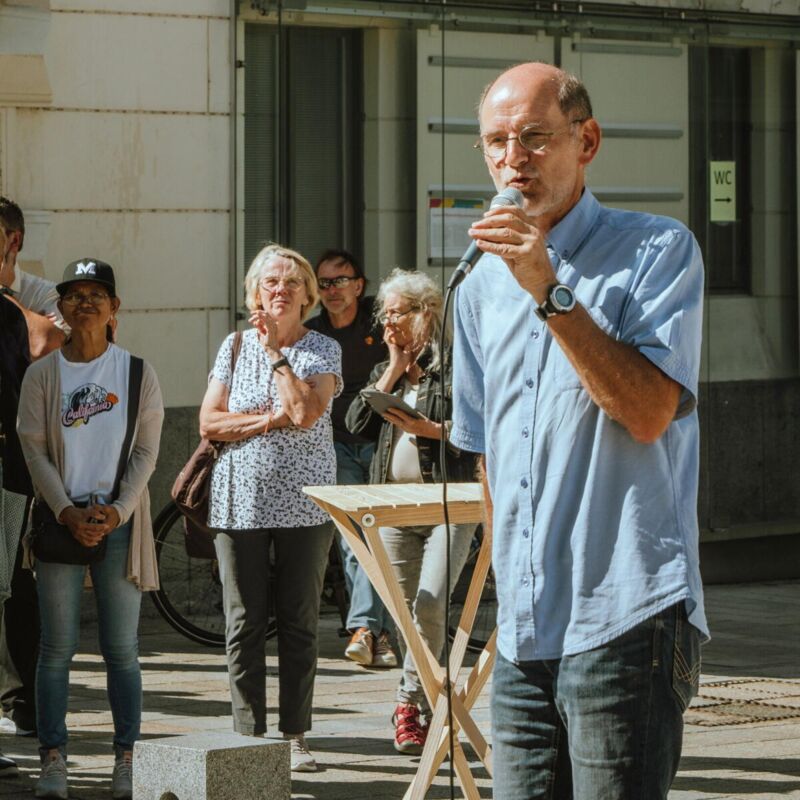 Max Gramberger: Die ganze Veranstaltung war von einer sehr positiven Grundstimmung getragen. Ich schätze, dass so zwischen 200 und 300 Personen vor Ort waren und ihre Anliegen durch Plakate aber auch durch Statements deutlich vorgetragen haben. Mir hat gefallen, dass der Slogan „Ried riad si“ gut zur Geltung gekommen ist. So wie Dietmar in schwierigen Zeiten mit dem Stiefel die Menschen gesammelt hat, wurde auch bei unserer Demo ein Stiefel vorneweg getragen und die Notwendigkeit des gemeinsamen Handelns betont. Im Sinne von „Global denken, lokal handeln“ haben wir dann auch acht Forderungen an den Rieder Bürgermeister formuliert und ihm diese überreicht. Dabei geht es um Punkte, wo die Stadt selber etwas tun kann, z. B. Bodenversiegelung bzw. - Entsiegelung, Radfahren, Energiesparen oder Stadtbegrünung. Und vor allem, dass sich im Stadtamt eine Person wirklich um Klimafragen aller Art kümmert.