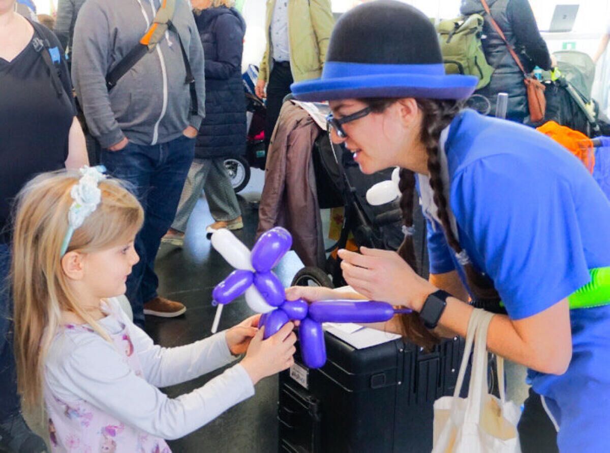 Mit dem Mitmachzirkus Jonglina gibt es um 16 Uhr wieder ein Kinderprogramm, bei dem die Besucher „im Vorbeigehen“ jonglieren ausprobieren können.