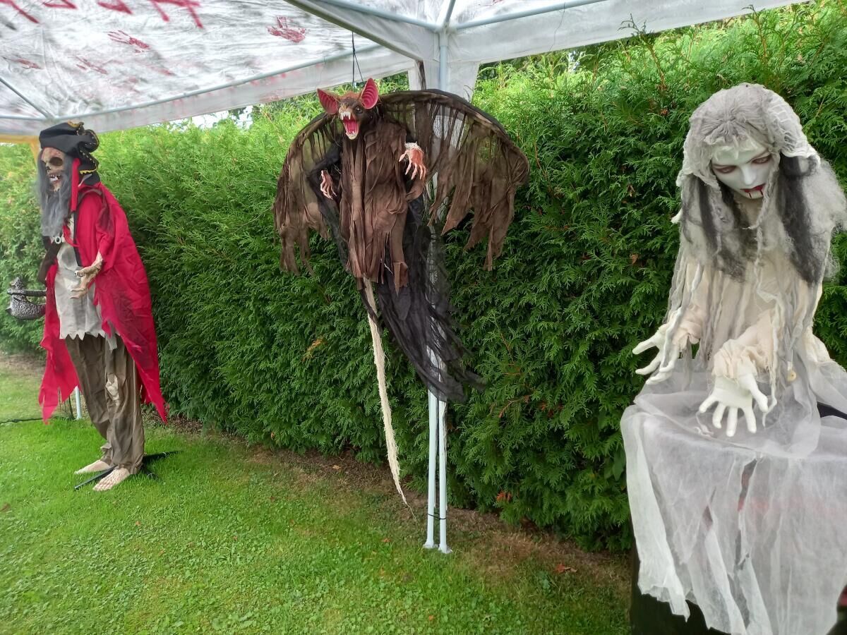 Los geht es am 31. Oktober mit Einbruch der Dämmerung. Bis dahin können Neugierige die Halloween-Wiese bereits bestaunen. „Letztes Jahr sind die Leute in Schlangen bis zur Kirchenkreuzung gestanden, das war schon eine Attraktion“, erinnert sie sich.