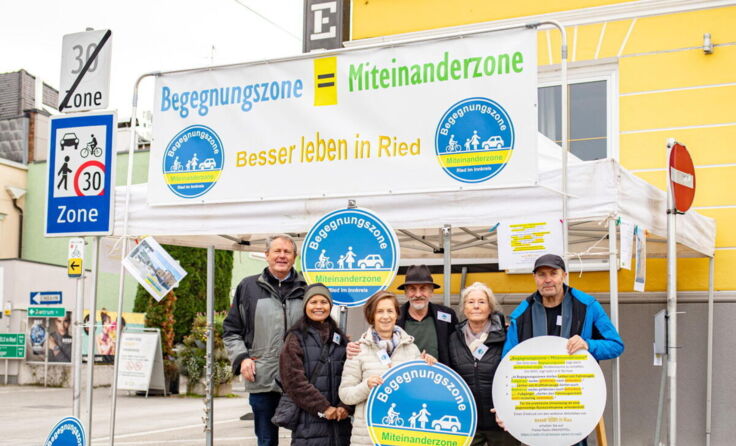 RIED. Die Initiative „Besser leben in Ried“ machte mit einer Informationsaktion auf die Begegnungszone im Stadtzentrum aufmerksam. Diese gibt es seit der Eröffnung der Weberzeile und soll das gemeinsame Miteinander von Fußgängern, Radfahrern und Autofahrern fördern.