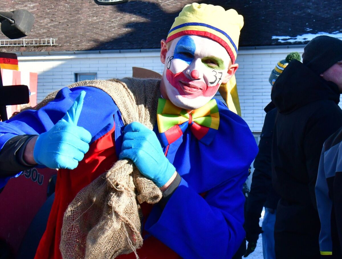 Neben den aufwendig gestalteten Wägen und Kostümen gehört in Eberschwang auch der Clown mit seinem Sack voller Zuckerl zum festen Bestandteil des Umzugs.