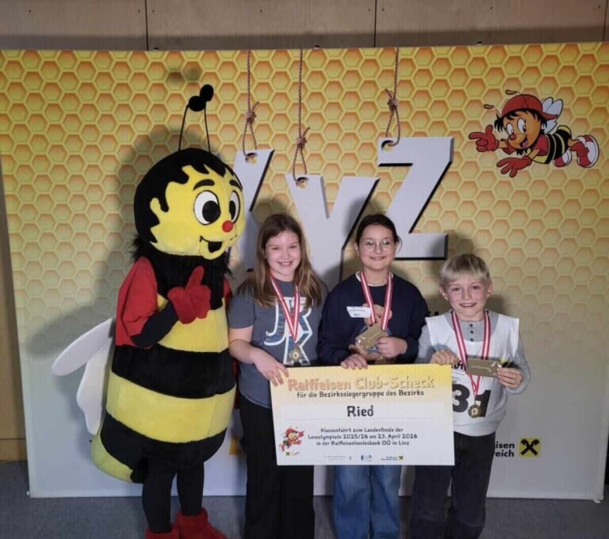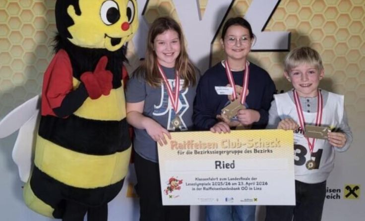 Die Leseolympiade fand in der Volksschule Tumeltsham statt. 26 Schulen nahmen an dem Event teil, wobei die jungen Leseratten knifflige Fragen aus drei Büchern beantworten mussten. Marlene Hochhold, Andelina Smiljanic und Xaver Mühringer beeindruckten mit Wissen und Schnelligkeit. Mit ihrem Sieg qualifizierten sie sich für das Landesfinale.