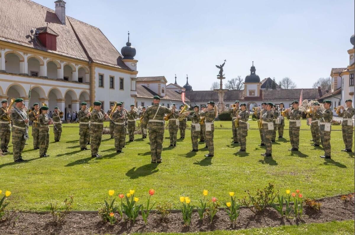 REICHERSBERG. Die Militärmusik Oberösterreich gestaltet am Freitag, 27. März, ein Platzkonzert im Stiftshof des Augustiner-Chorherrenstiftes Reichersberg.