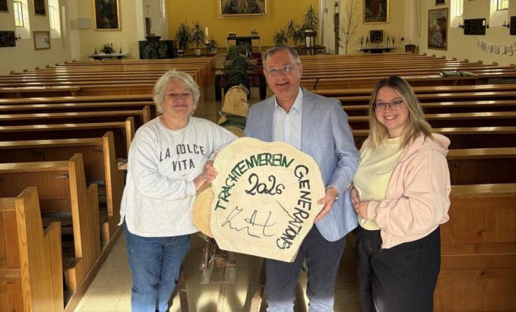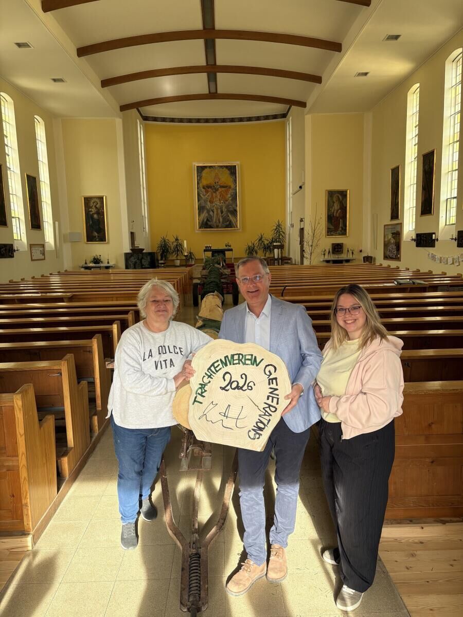 Bürgermeister Bernhard Zwielehner ließ es sich nicht nehmen, persönlich für die Auslösung des Maibaums zu sorgen. Als Gegenleistung wurde eine gemeinsame Jause für den Generationschor und den Trachtenverein vereinbart.