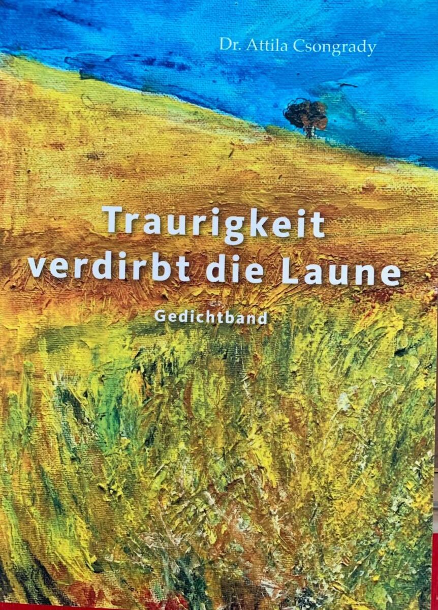 Attila Csongrady ist 1956 aus Ungarn geflüchtet, lebte in Österreich und Deutschland und wohnt seit 1979 im Bezirk Ried. In Wien hat er Medizin studiert, so arbeitete er als Anästhesist im Krankenhaus Ried. Vor etwa 20 Jahren hat er mit dem Schreiben begonnen, der Malerei frönt er seit über 30 Jahren. So ist auch klar, dass das Cover des neuen Gedichtbandes von Attila Csongrady stammt.