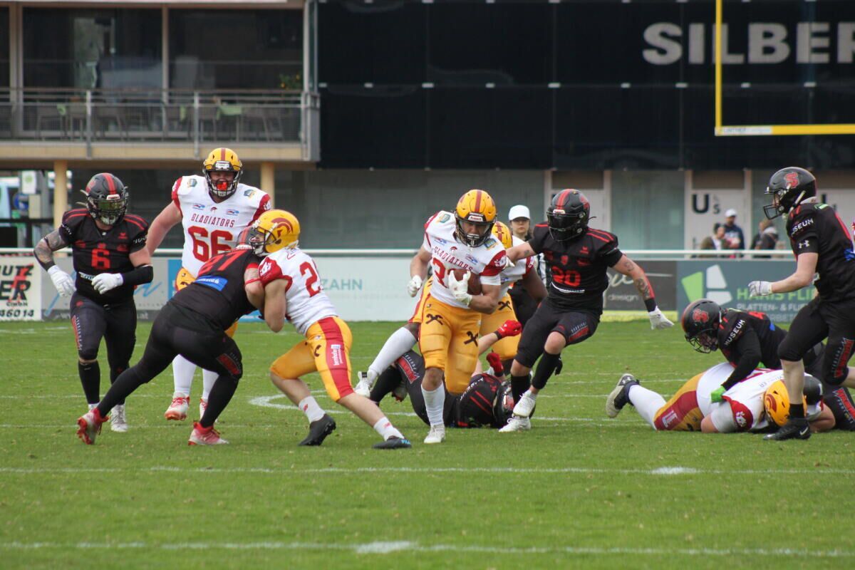 Nach der Halftime dominierten beide Defenses das Geschehen und es dauerte bis spät ins dritte Viertel, bis erneut Punkte erzielt werden konnten. Gladiators-Running Back Julian Tiefenthaler marschierte über das halbe Feld zum Touchdown und brachte die Rieder mit 23:14 in Führung.