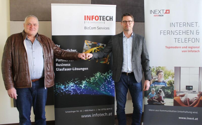 Für die bestehenden Kunden ändert sich durch die Übernahme des wnet-Netzes grundsätzlich nichts, alle Services und Preise bleiben unverändert. „Die Kunden können sich darauf verlassen, dass wir die hervorragende Betreuung, die sie von Franz Schiebler gewohnt sind, bestens weiterführen. Zudem werden wir die Services im Sinne unserer Kunden optimal weiterentwickeln. So werden sie in Zukunft mit Inext-TV Fernsehvergnügen der neuesten Generation genießen können, bei dem es möglich ist, verpasste Sendungen sieben Tage lang nachholen zu können. Außerdem werden wir ab Sommer Internet-Bandbreiten von 1.000 MBit/s anbieten“, informiert Bernhard Schuster, Geschäftsführer der Firma Infotech. Das Infotech-Glasfasernetz ist bereits über 500 Kilometer lang und wird in den nächsten Jahren stetig wachsen. Mit dem Kauf des wnet-Netzes ist auch in diesem Gebiet ein flächendeckender Glasfaserausbau möglich. Als langfristige Lösung mit höchsten Bandbreiten sind mit einem Glasfaseranschluss fixe symmetrische Bandbreiten für Up- und Downstream möglich.