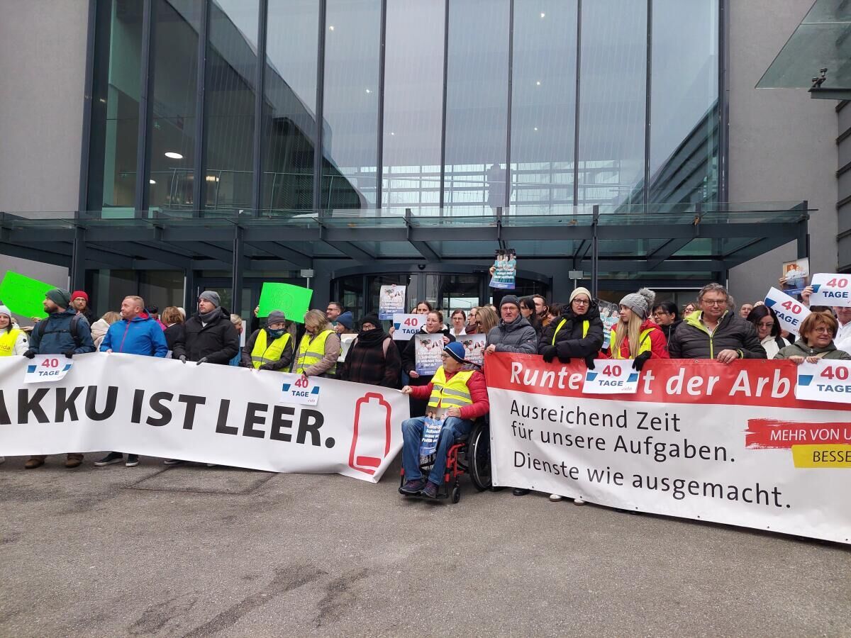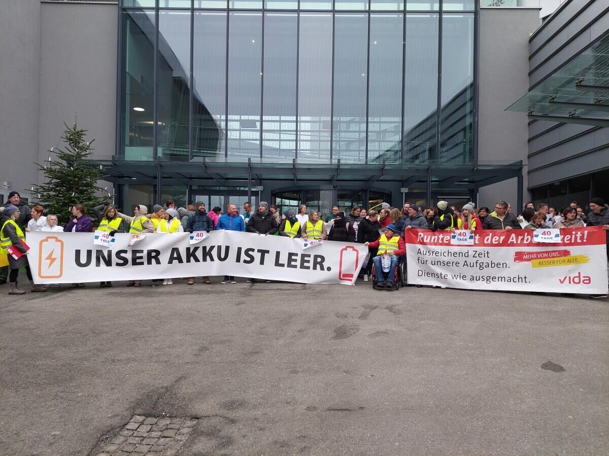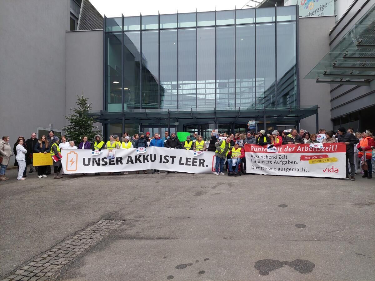 Aktion vor Rieder Krankenhaus: Weniger Arbeitszeit und mehr Lohn gefordert