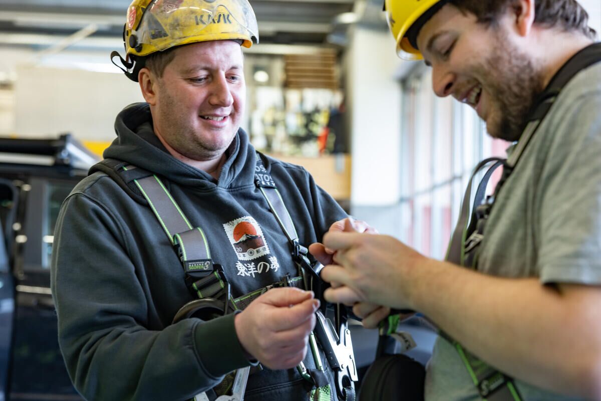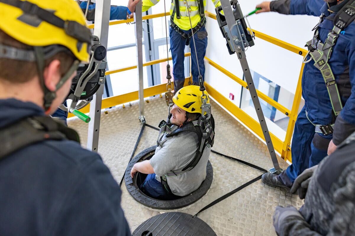 Mitarbeitende des Umwelttechnikunternehmens trainierten unterschiedliche Situationen aus dem Arbeitsalltag und vertieften ihr Wissen zu Arbeitsschutz und Gefahrenprävention.
