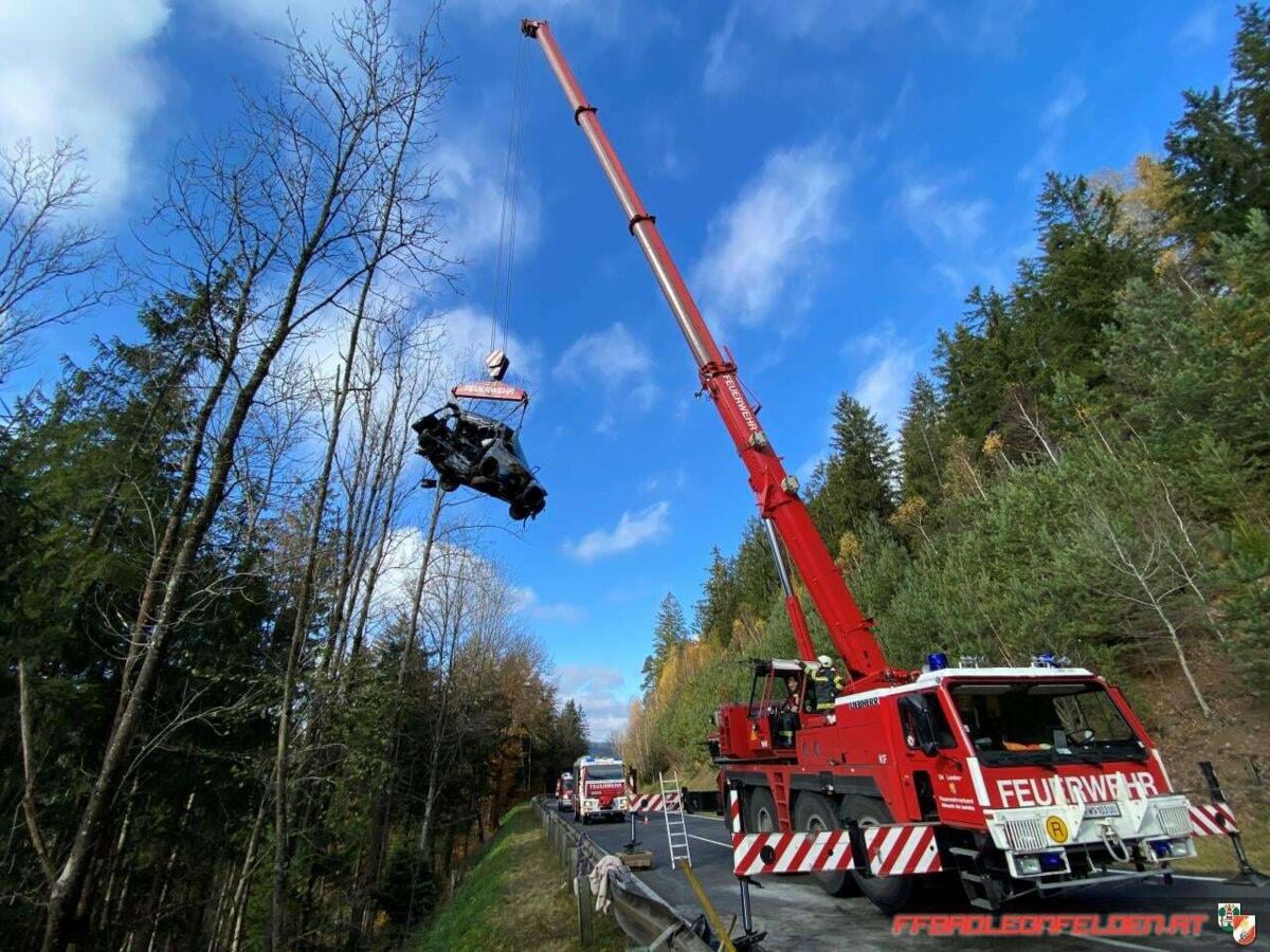 Ein 56-jähriger Linzer war am 5. November kurz nach 9 Uhr morgens mit seinem Auto auf der B 126 unterwegs. Im Gemeindegebiet von Sonnberg kam er ins Schleudern und rutschte quer auf den Gegenfahrstreifen. Dabei prallte er mit der rechten Fahrzeugseite gegen die Front des entgegenkommenden Autos, gelenkt von einem 64-jährigen türkischen Staatsbürger aus dem Bezirk Rohrbach. Durch die Wucht des Anpralles wurde der Pkw des Linzers über die Leitschiene in ein angrenzend abschüssiges Waldstück geschleudert, wo er zwischen den Bäumen entgegen seiner Fahrtrichtung zum Stillstand kam. Das Auto des Rohrbachers kam quer zur Fahrbahn auf seinem Fahrstreifen schwer beschädigt zum Stehen.