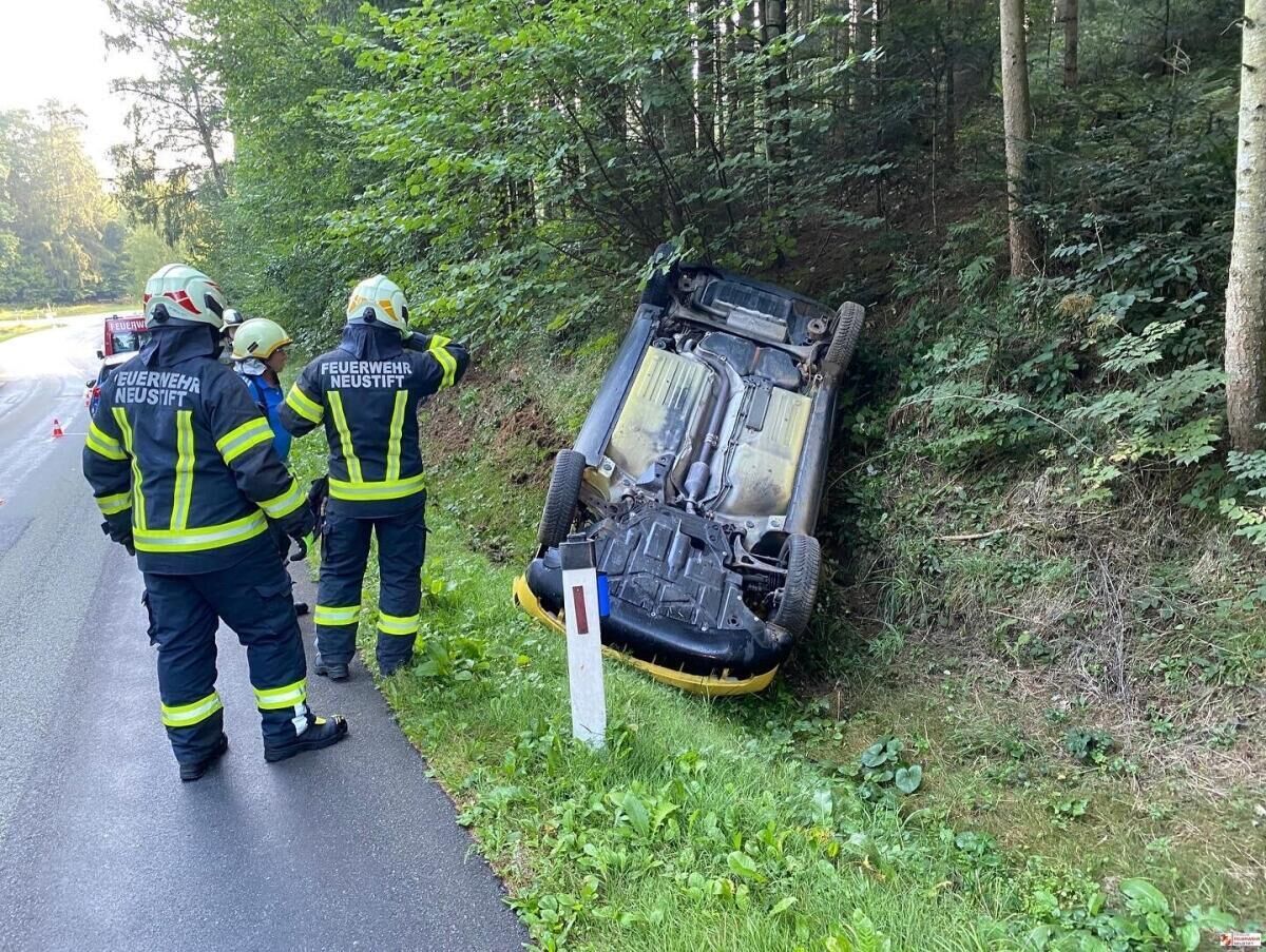 Auf Höhe Grubberg zwischen Oberkappel und Oberaschenberg war am Mittwoch ein Fahrzeug aus ungeklärter Ursache von der Fahrbahn abgekommen und im Seitengraben am Dach liegen geblieben. Die Unfalllenkerin konnte selbst aus ihrem Auto klettern. Die Kameraden der FF Neustift zogen das Fahrzeug per Einbauseilwinde wieder zurück auf die Straße.
