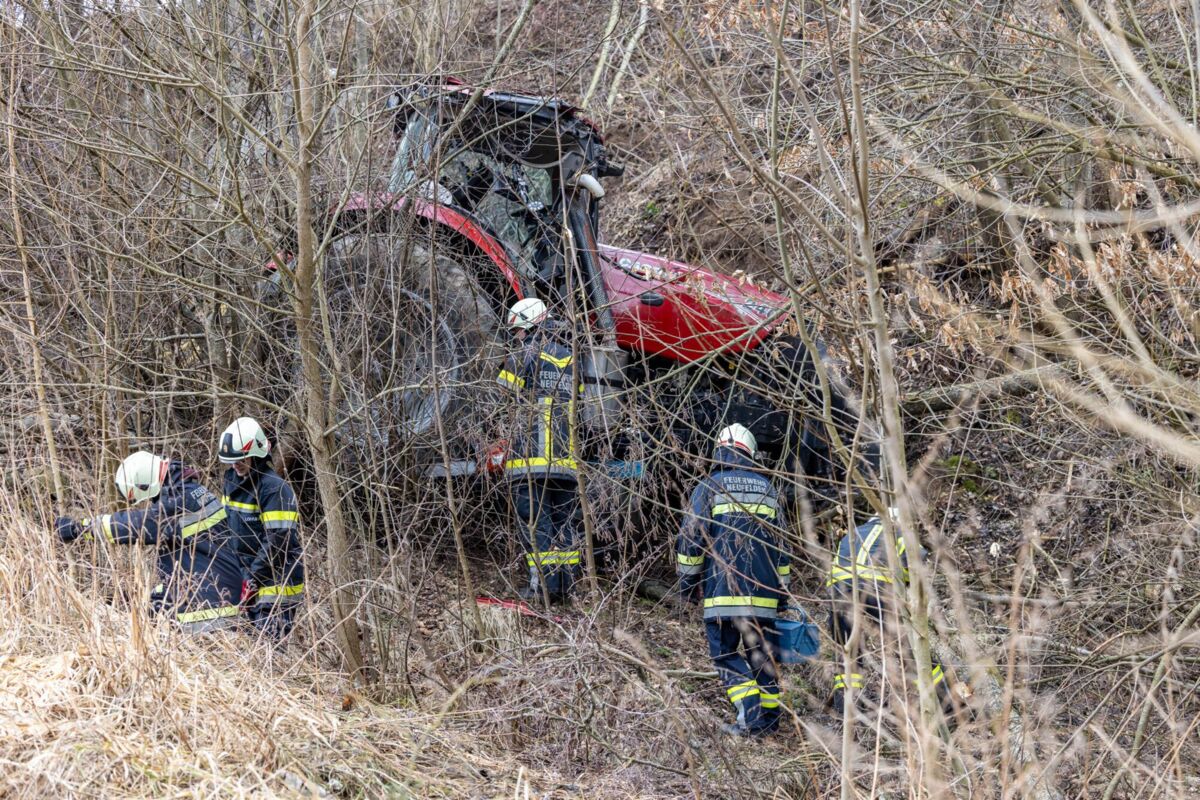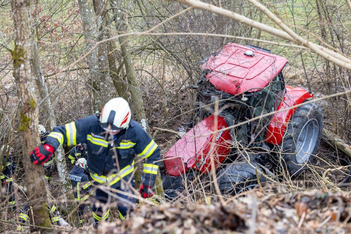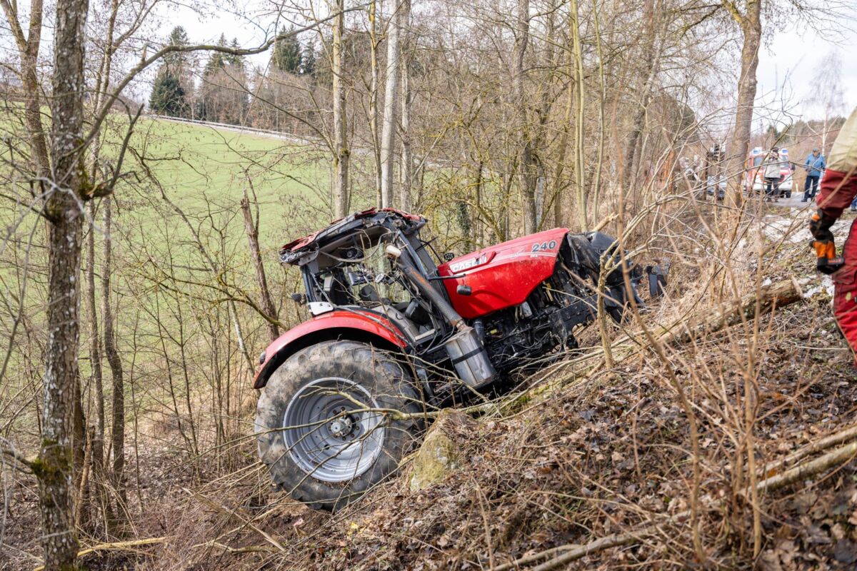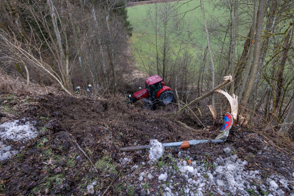 Zum Zeitpunkt des Unfalls befanden sich zwei Schüler im Fahrzeug. Beim Eintreffen der Einsatzkräfte lag der Traktor in schwieriger Hanglage zwischen Bäumen. Die Feuerwehr sicherte das Fahrzeug umgehend gegen weiteres Abrutschen und unterstützte den Rettungsdienst bei der Versorgung der beiden Jugendlichen.
