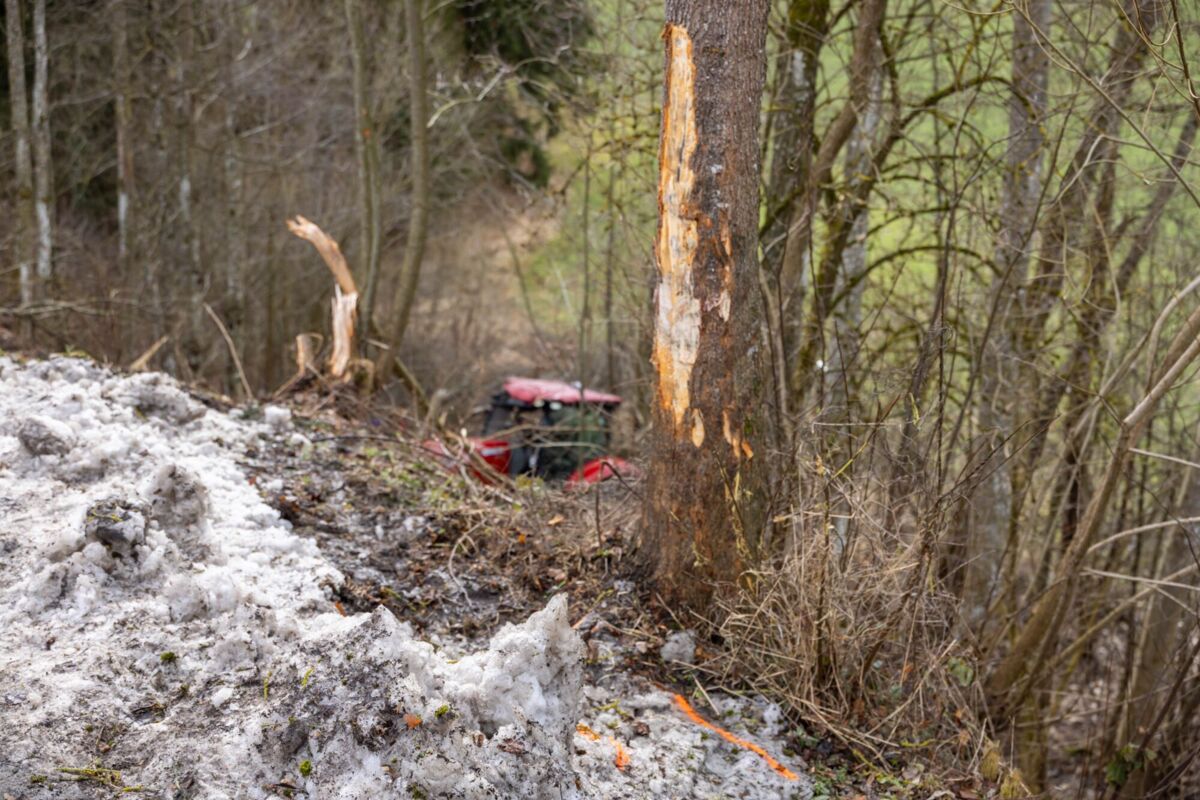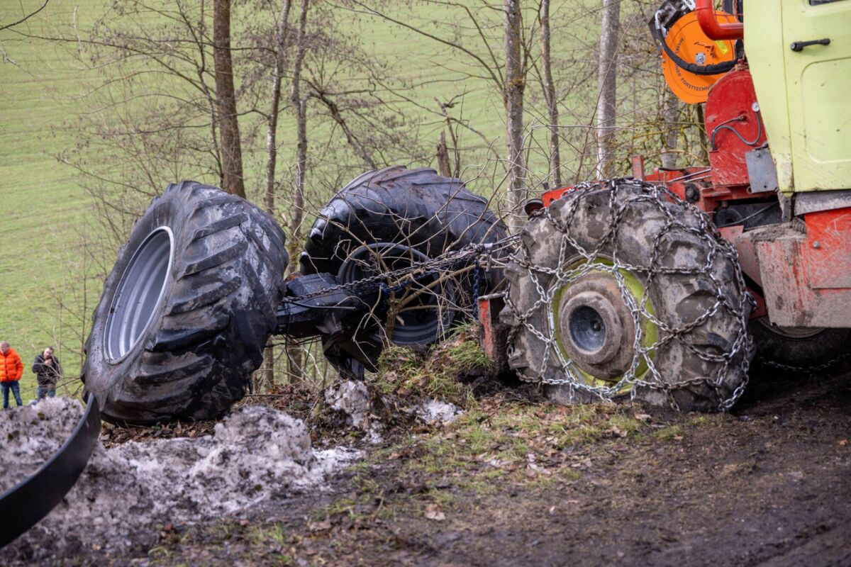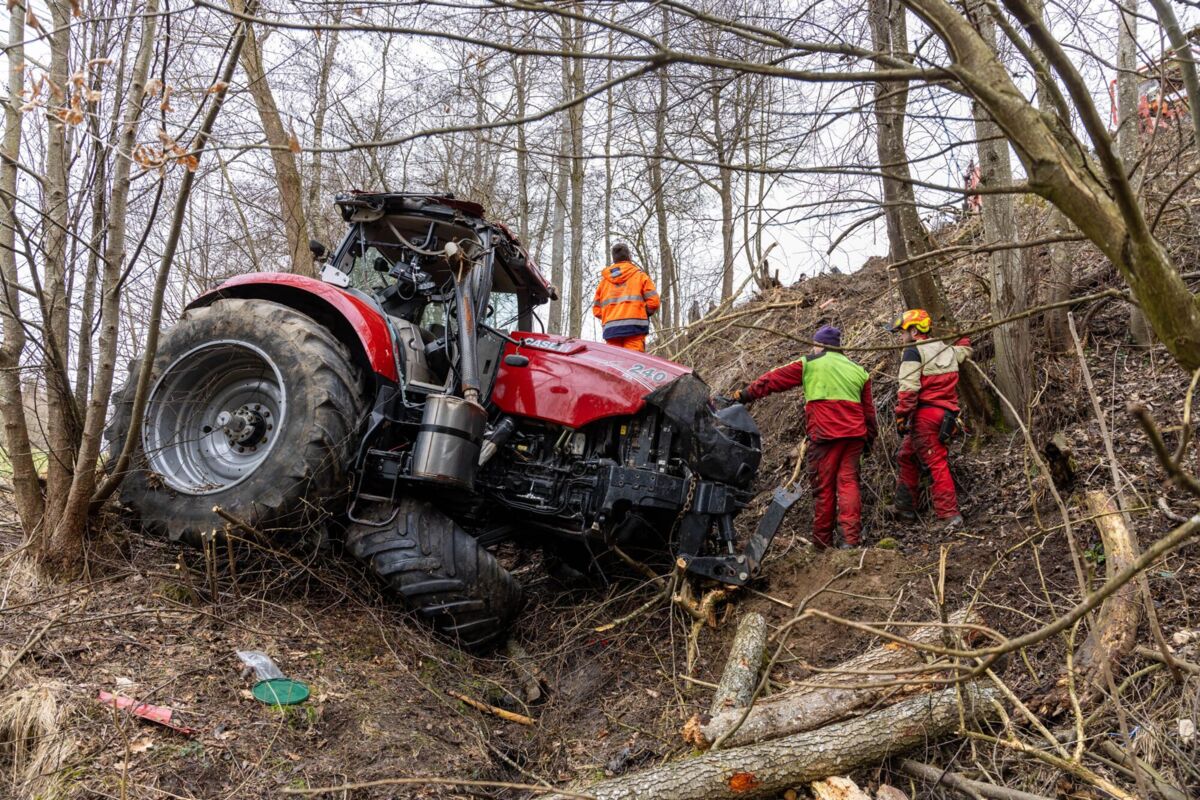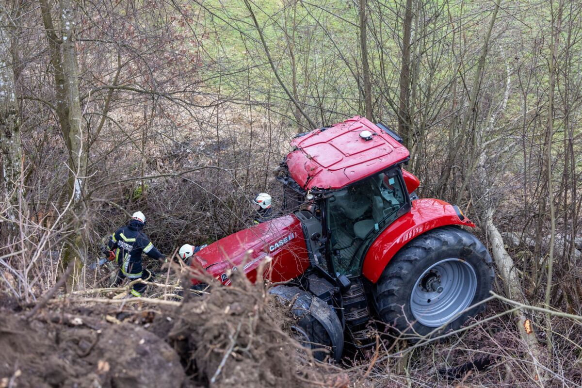 Zum Zeitpunkt des Unfalls befanden sich zwei Schüler im Fahrzeug. Beim Eintreffen der Einsatzkräfte lag der Traktor in schwieriger Hanglage zwischen Bäumen. Die Feuerwehr sicherte das Fahrzeug umgehend gegen weiteres Abrutschen und unterstützte den Rettungsdienst bei der Versorgung der beiden Jugendlichen.