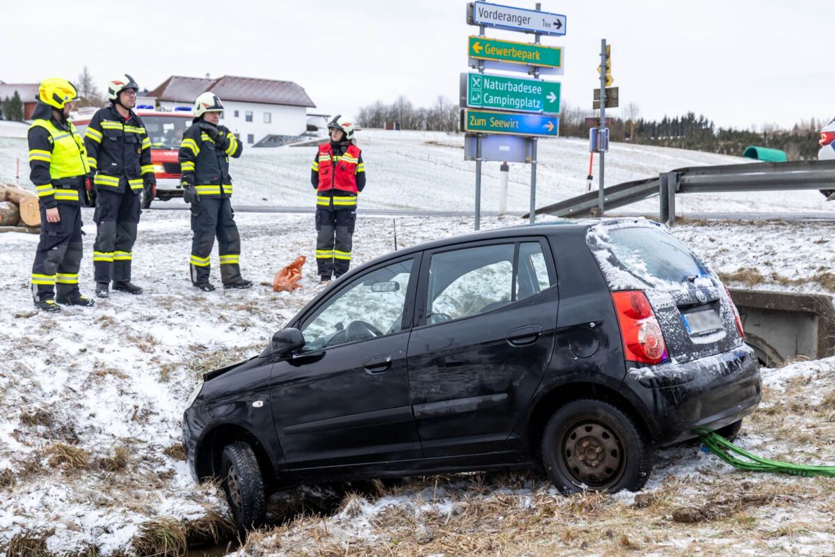 Ein Pkw war in einen Unfall verwickelt, wobei eine Person im Fahrzeug eingeschlossen, jedoch nicht eingeklemmt war. Die Rettung erfolgte in enger Zusammenarbeit zwischen dem Rettungsdienst und den alarmierten Feuerwehren Klaffer und Ulrichsberg.