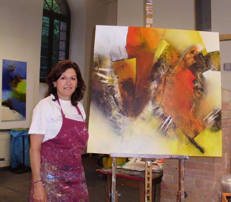 Irmgard Plöckinger verarbeitet verschiedene Materialien zu Bildern und bei Evi Wolfmayr dominieren Acrylmalerei und Mischtechniken.